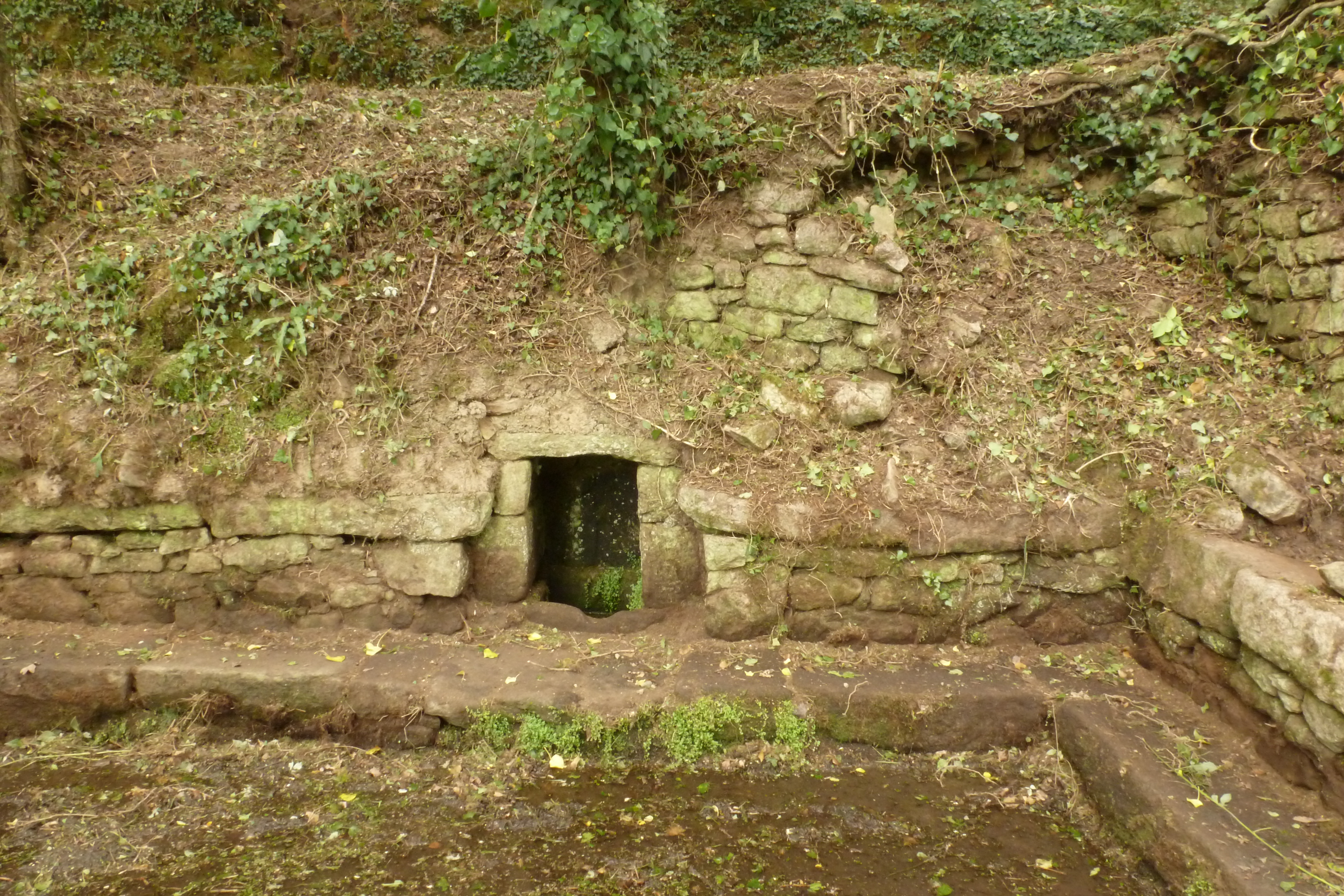 Fontaine incrustée dans le mur de soutènement qui maintient le chemin. Vue prise du nord.Immatriculation