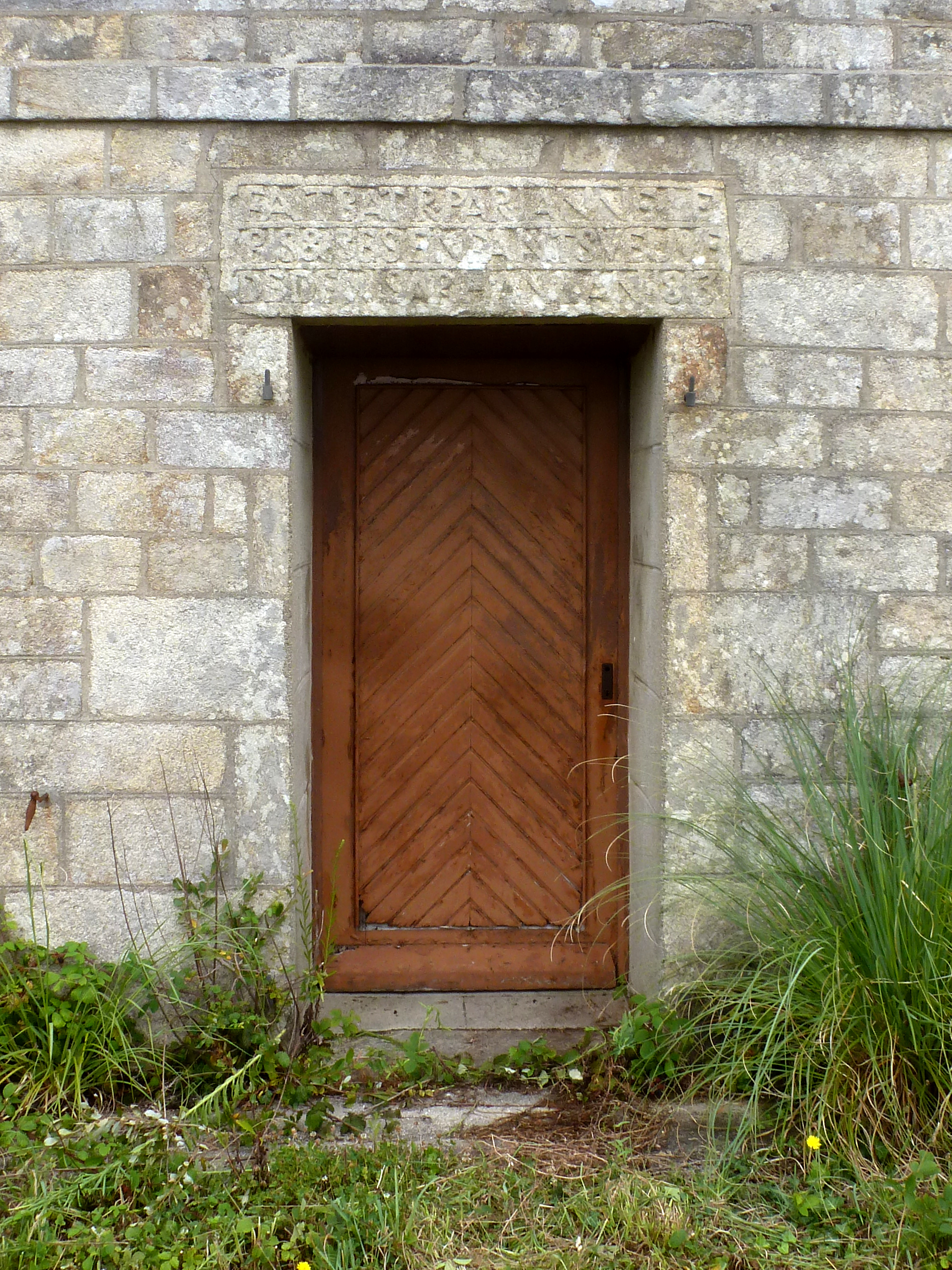 Logis, détail de la porte d'entrée et inscription : FAIT BATIR PAR ANNE LE BIS ET SES ENFANTS VEUVE DE DENIS ARHAN LAN 1813Immatriculation