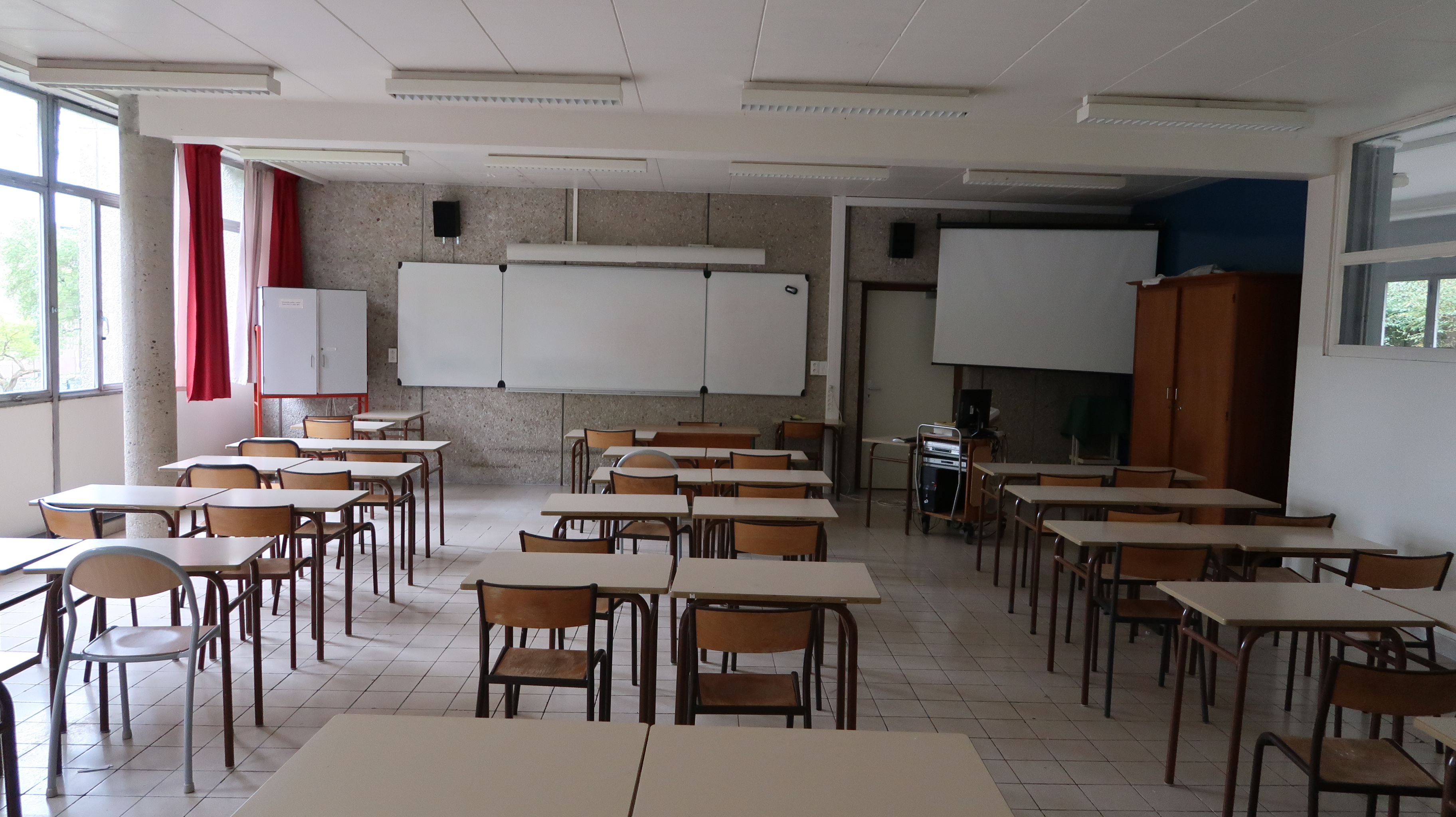 Ancienne salle d'étude, devenu salle de classe. R. Lopez architecte, 1958. Atypique pour l'époque, la structure porteuse est en retrait de la façade.Immatriculation