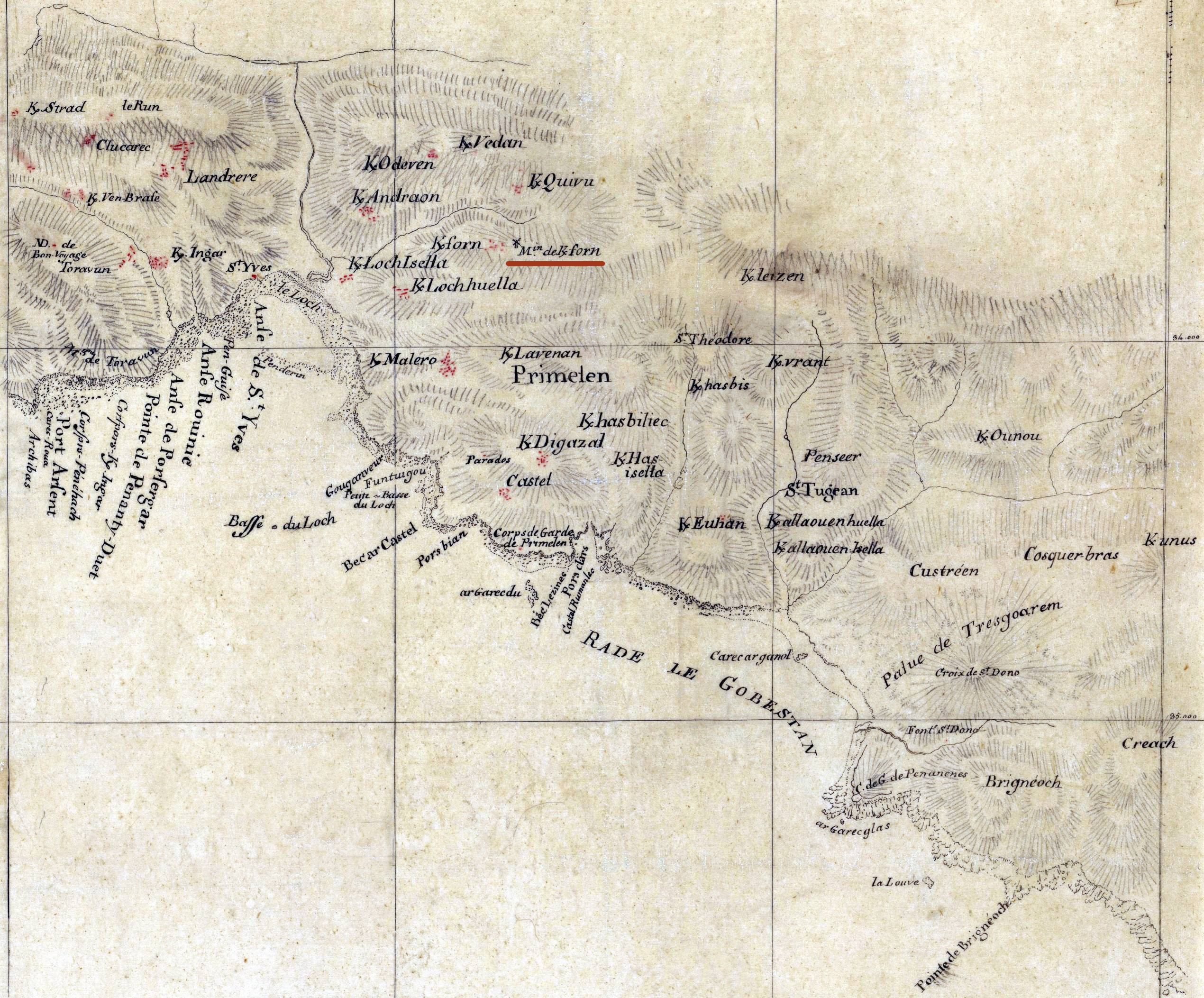 Carte topographique détaillée des côtes de la Bretagne par le service hydrographique de la marine. Feuillet "Primelin", 1776.Immatriculation