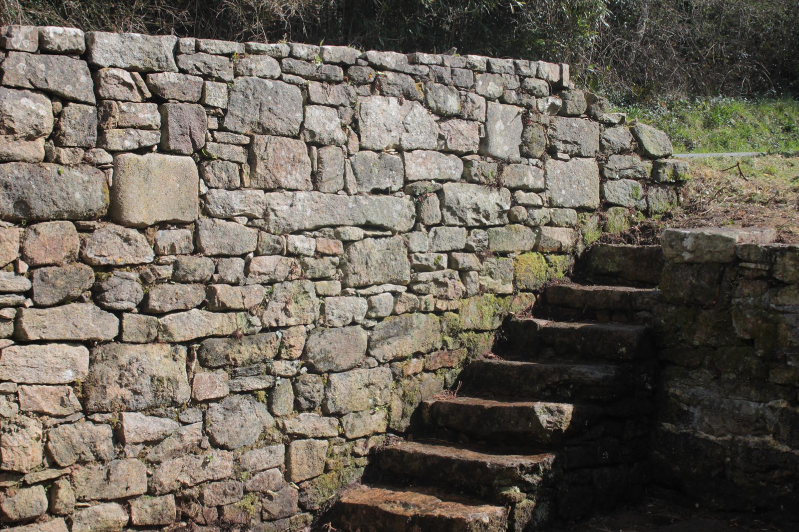 Vue rapprochée de l'escalier sud (avril 2018).Immatriculation