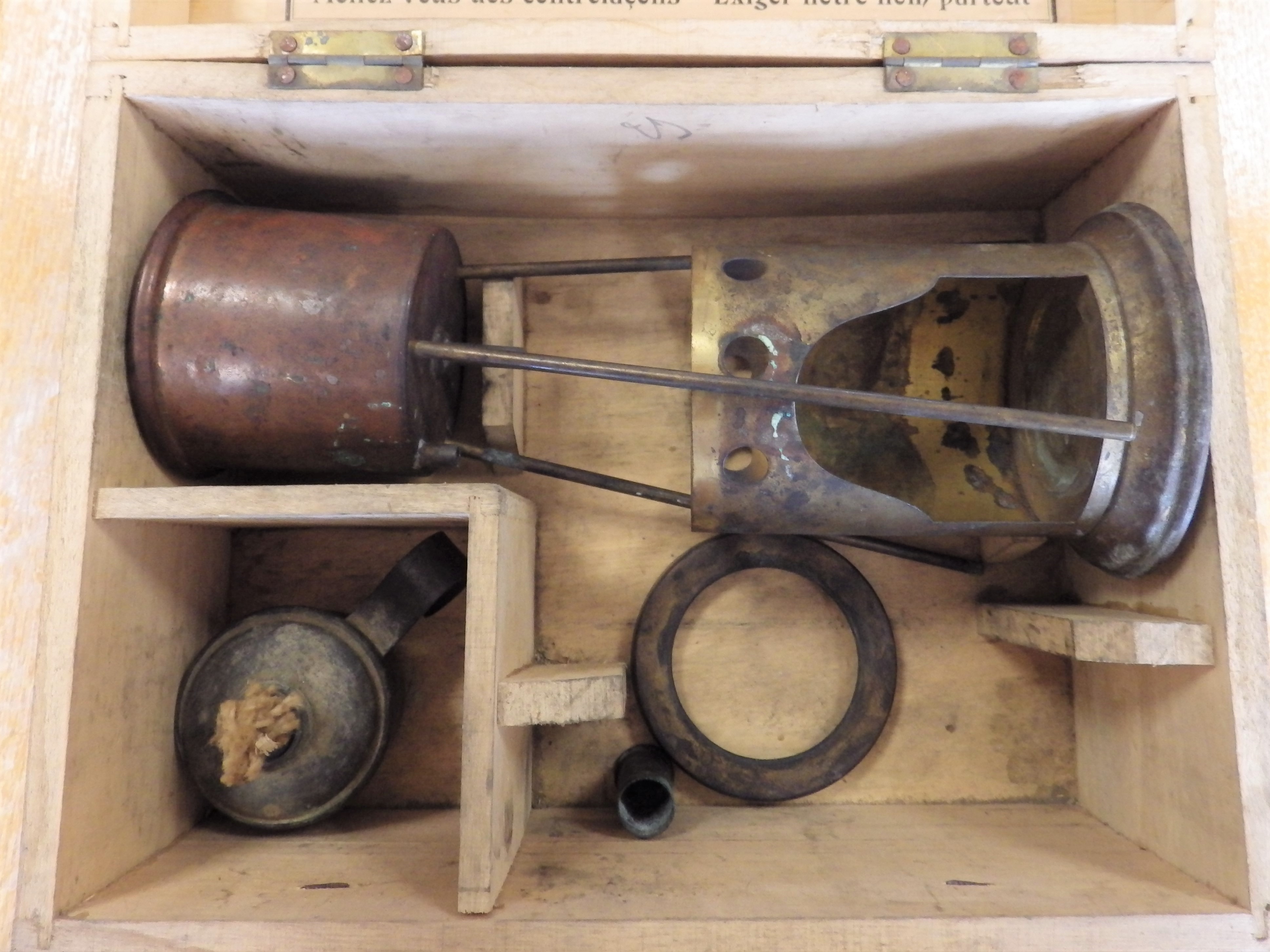 Alambic pour l'essai des vins dans sa boîte - Chaleur (Dujardin-Salleron)Immatriculation