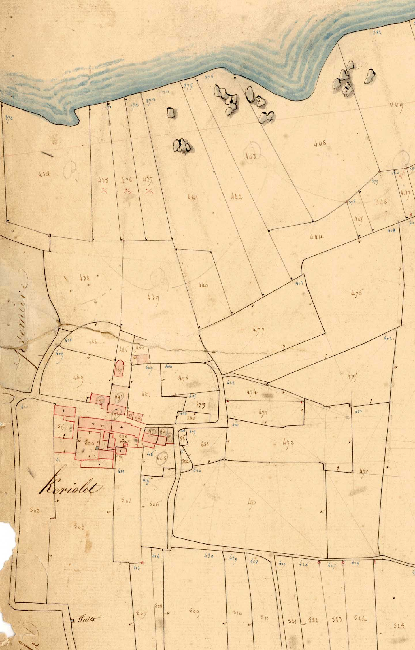 Village de Keriolet, cadastre ancien de la commune de Cléden-Cap-Sizun, 1836.Immatriculation