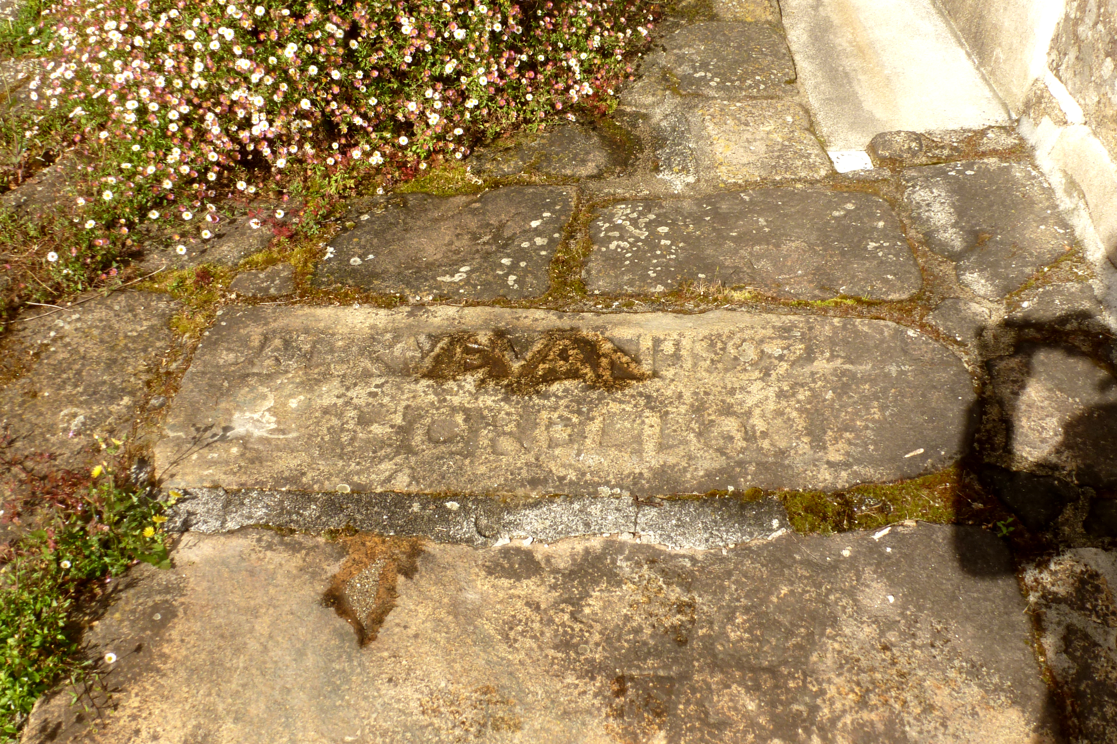 Dallage de la cour, linteau (?) en réemploi.Immatriculation