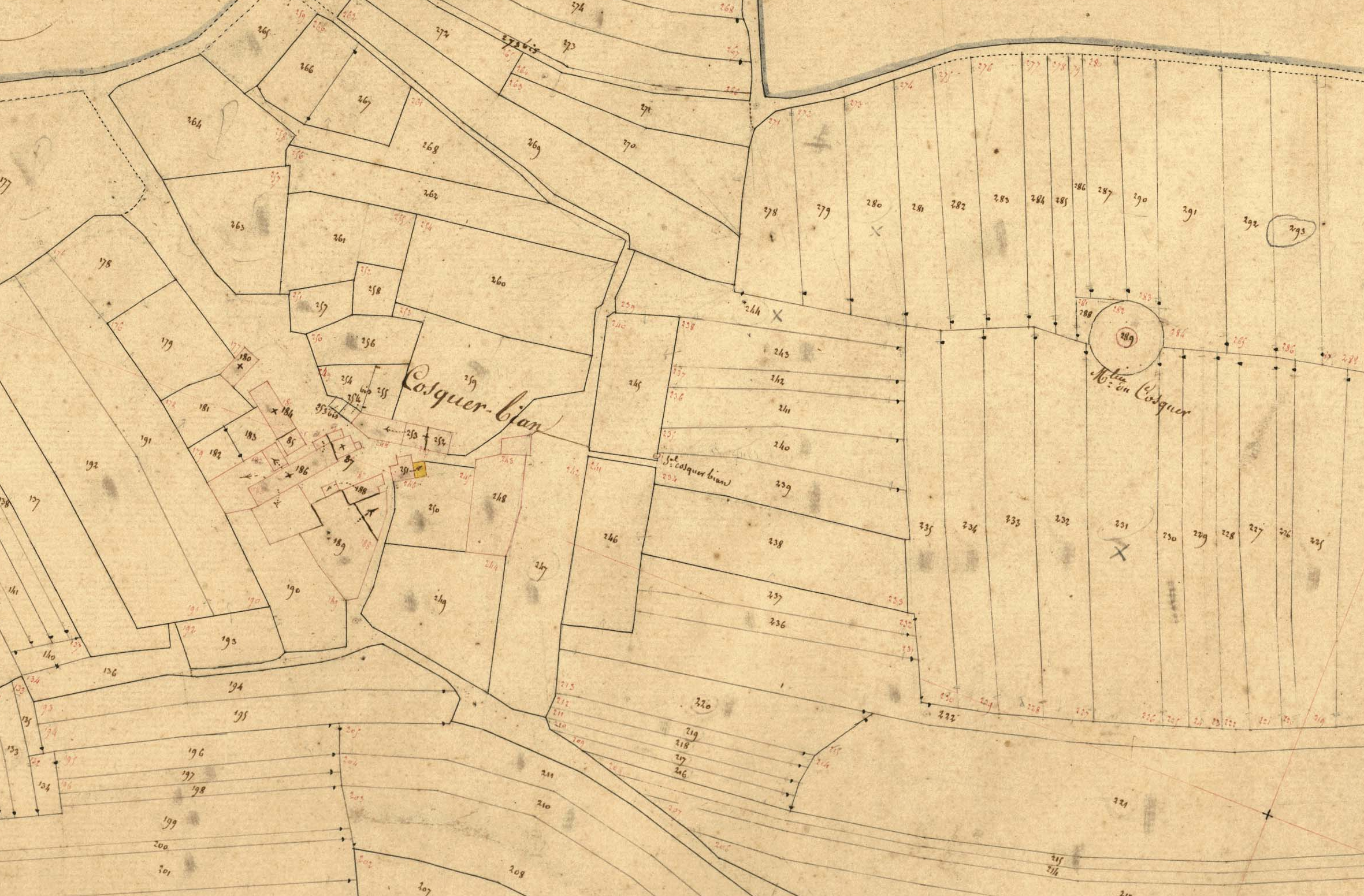 Village de Cosquer Bihan et moulin du Cosquer, cadastre ancien de la commune d'Esquibien, 1837.Immatriculation