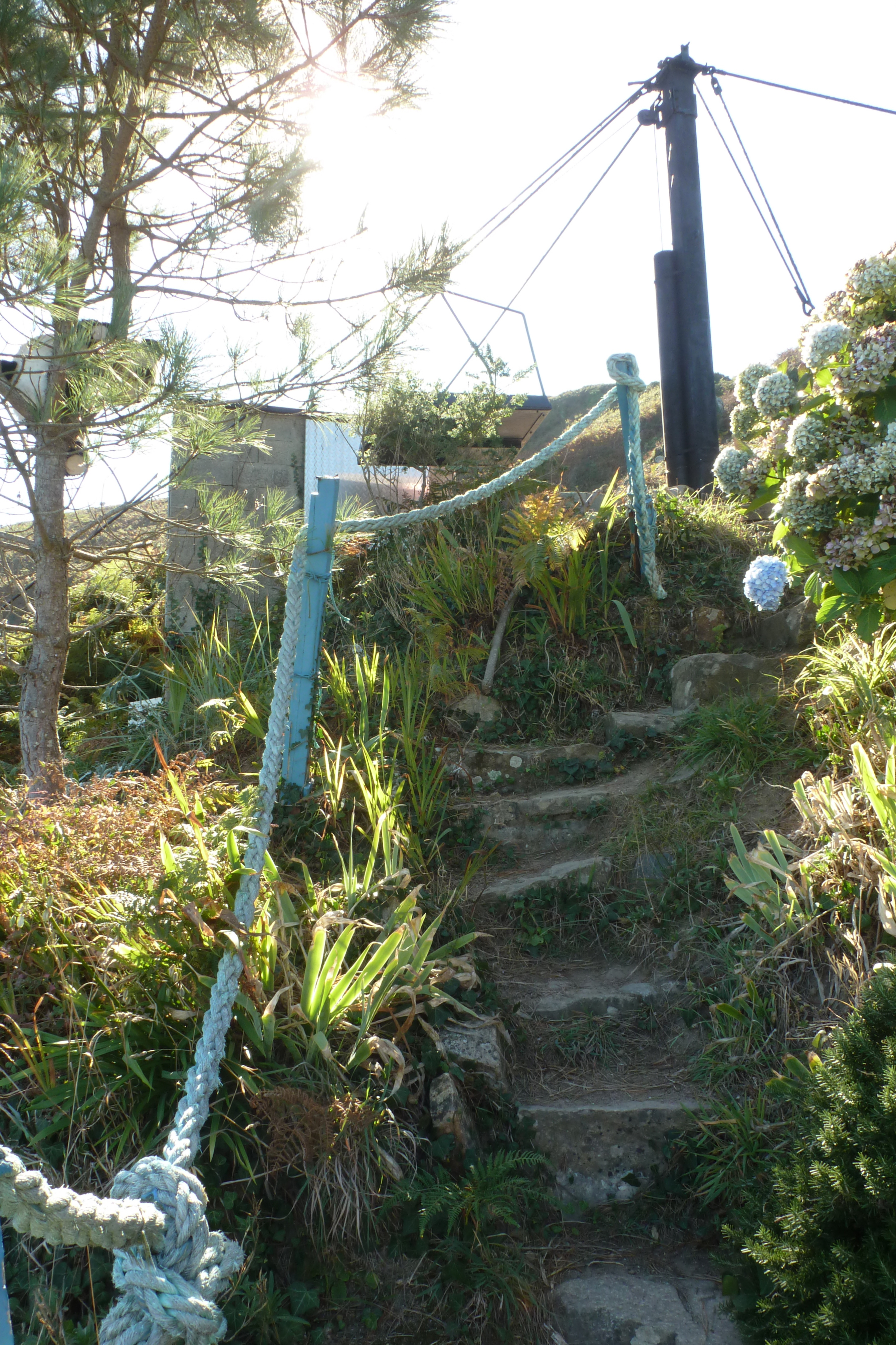 Chemin d'accès, détail de l'escalier taillé dans la roche.Immatriculation