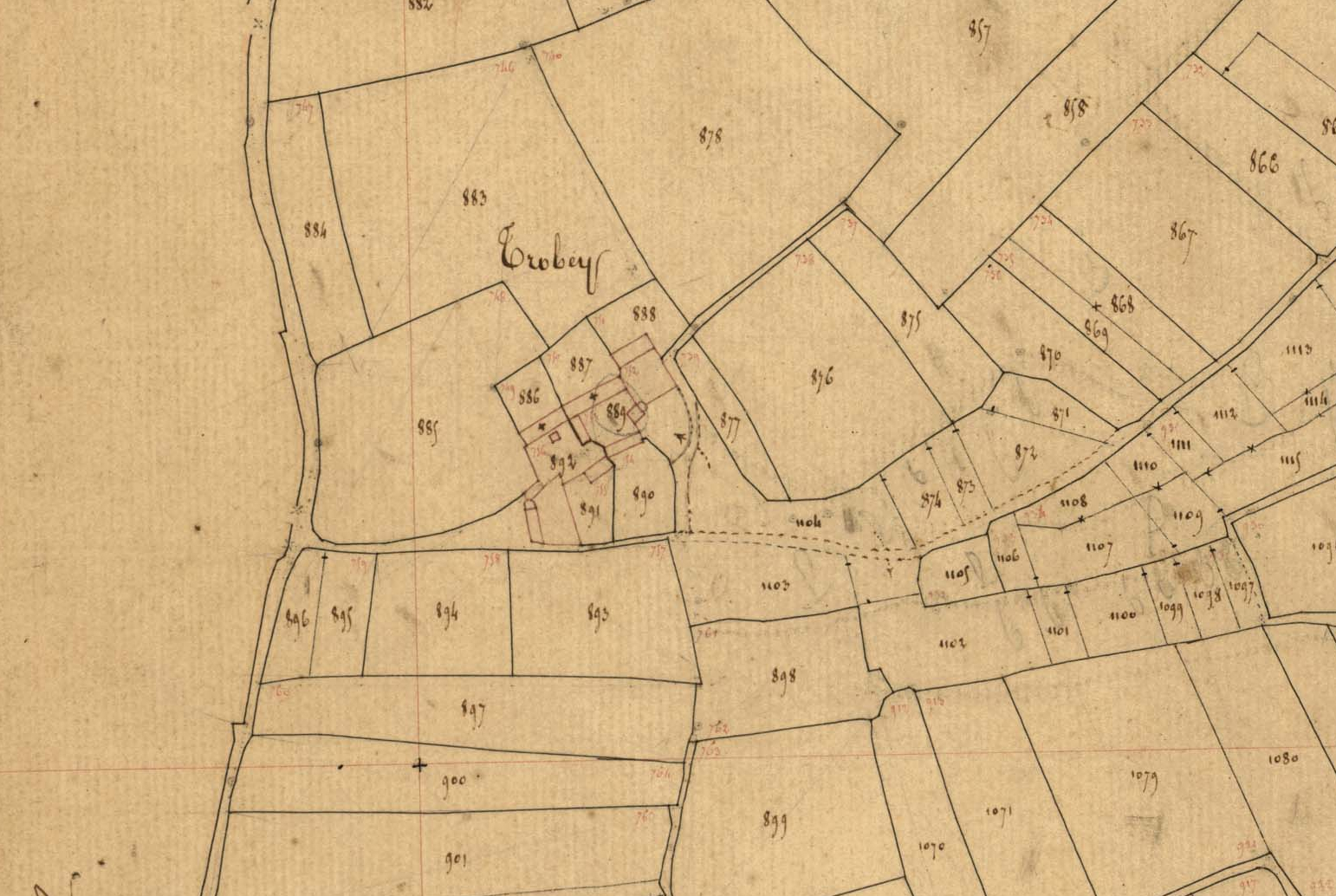 Village de Trobey, cadastre ancien de la commune d'Esquibien, 1837.Immatriculation