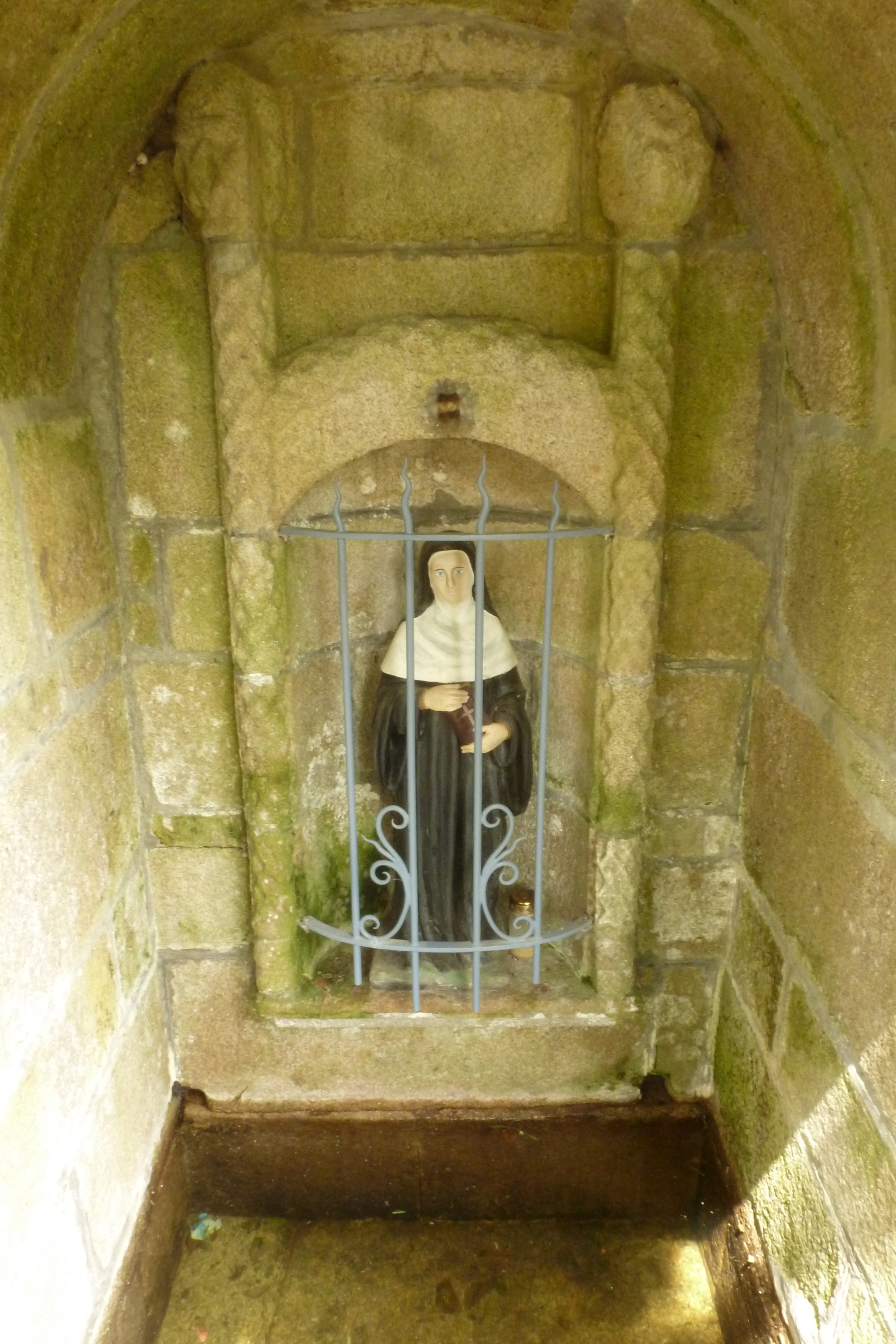 Détail de la niche et statue de la sainte.Immatriculation