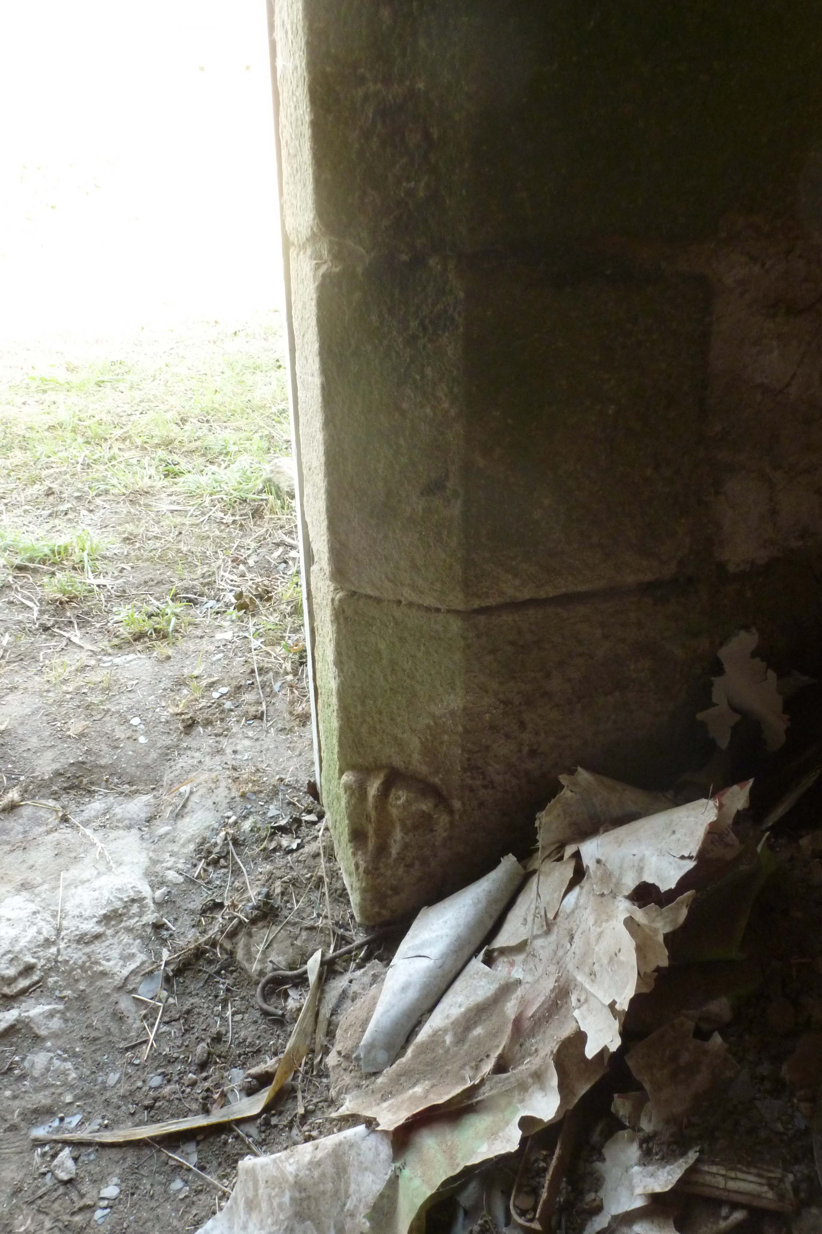 Chapelle Sainte-Marguerite, porte nord, détail du jambage. (2019)Immatriculation