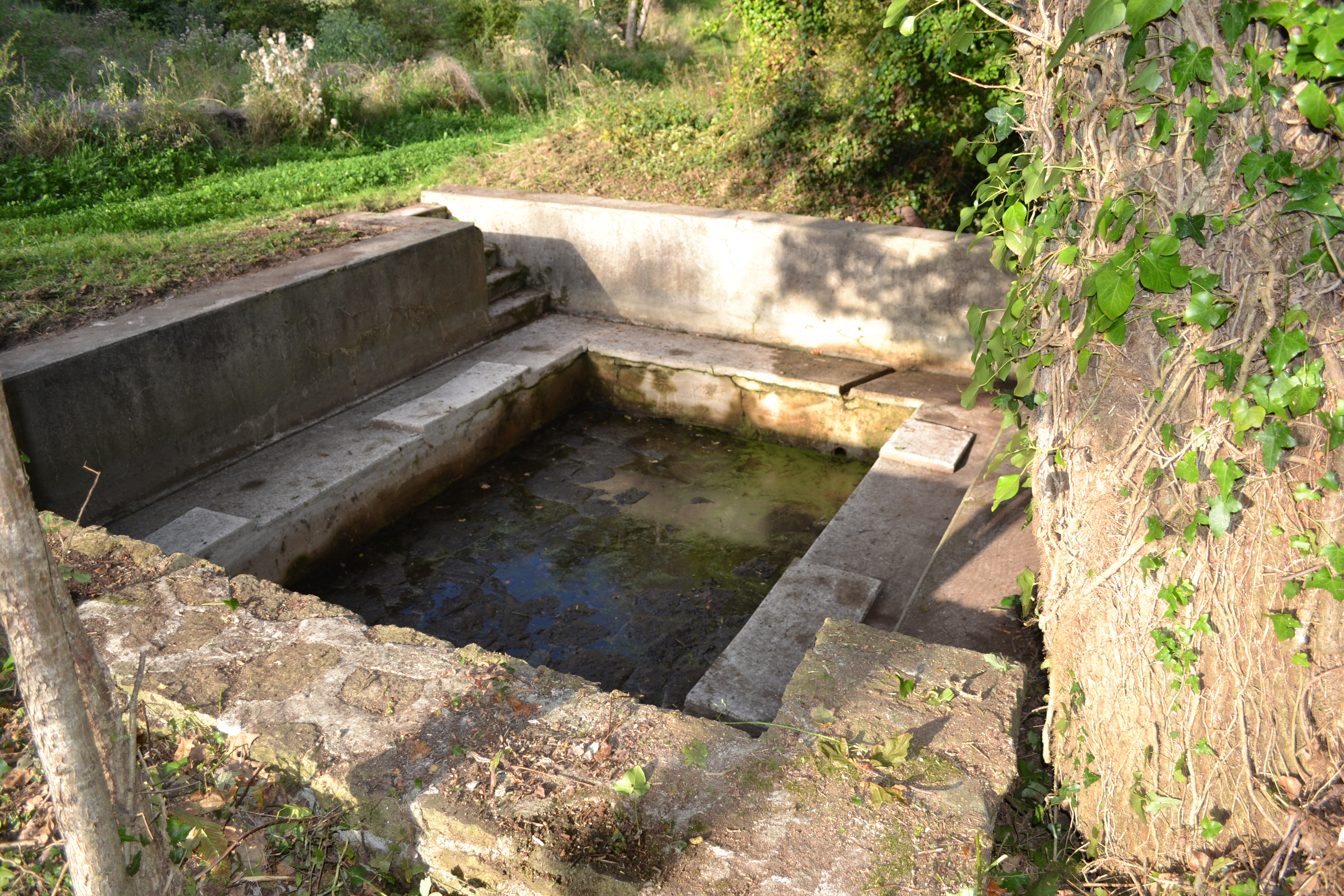 Kerhuon (Esquibien), lavoir daté 1952 dit "lenn ar carbonne". Vue prise de l'angle sud-ouest après nettoyage. (2014)Immatriculation