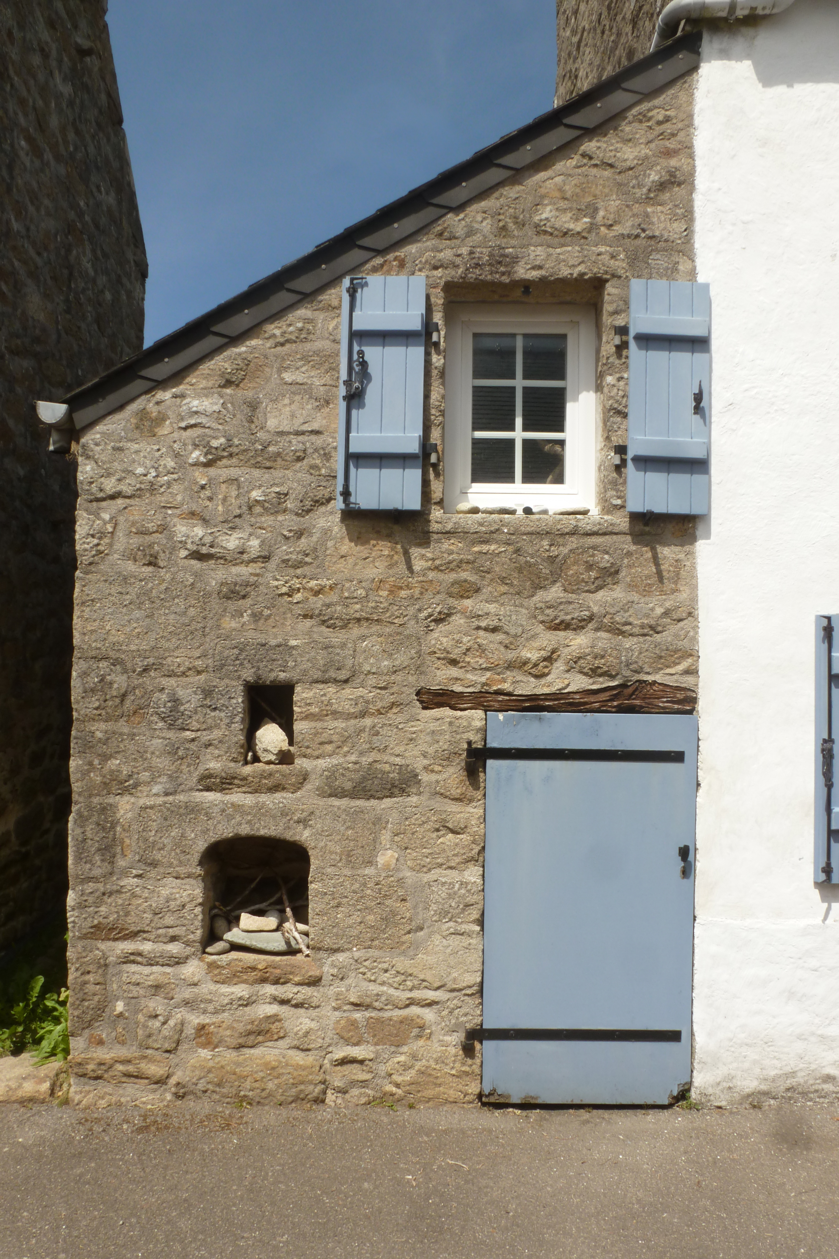 Bourg d'Esquibien, maison 1 datée 1846, détail de la crèche en appentis accolée au logis.Immatriculation