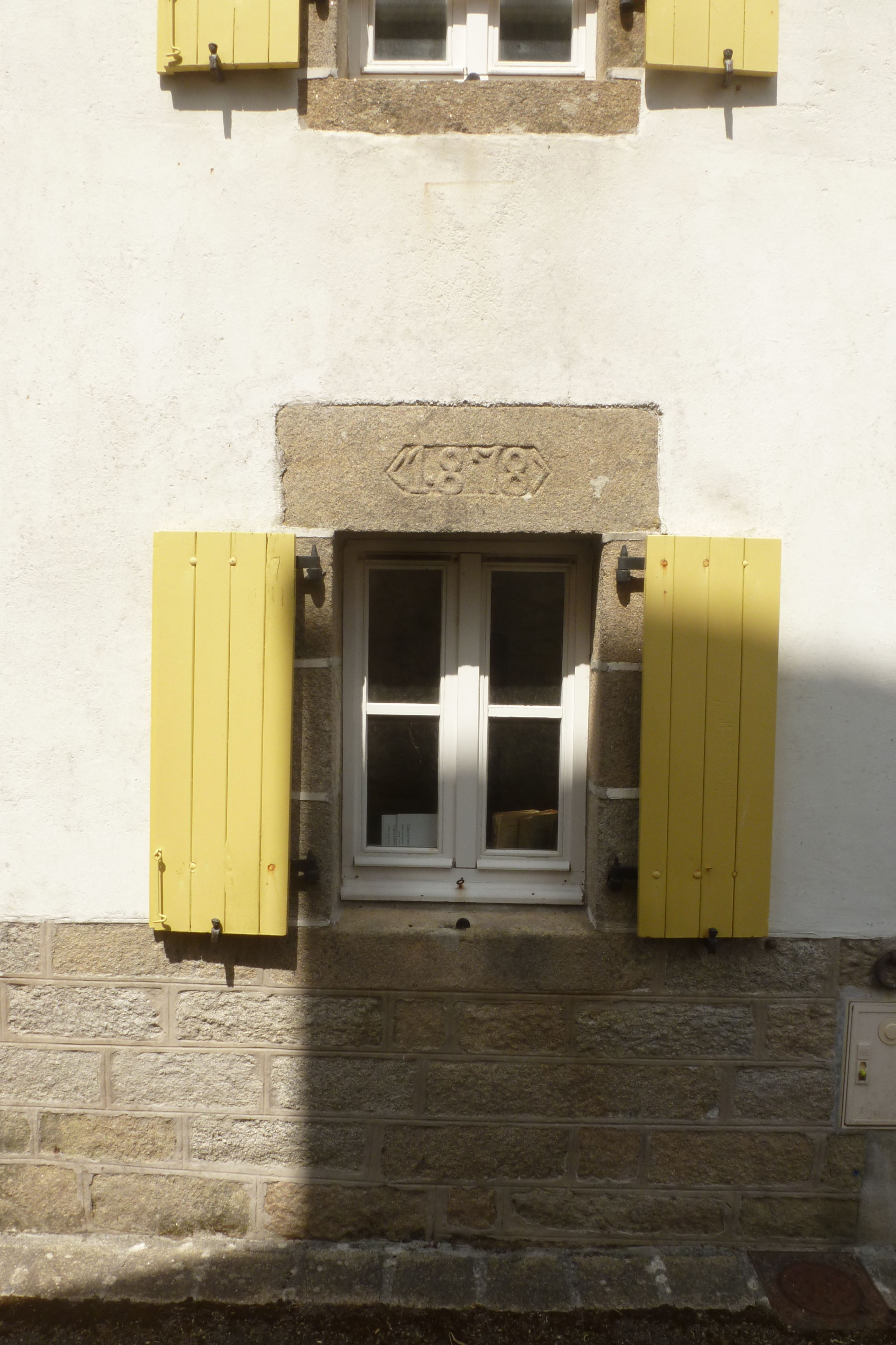 Bourg d'Esquibien, maison 4 datée 1878, élévation antérieure. Détail de la date.Immatriculation