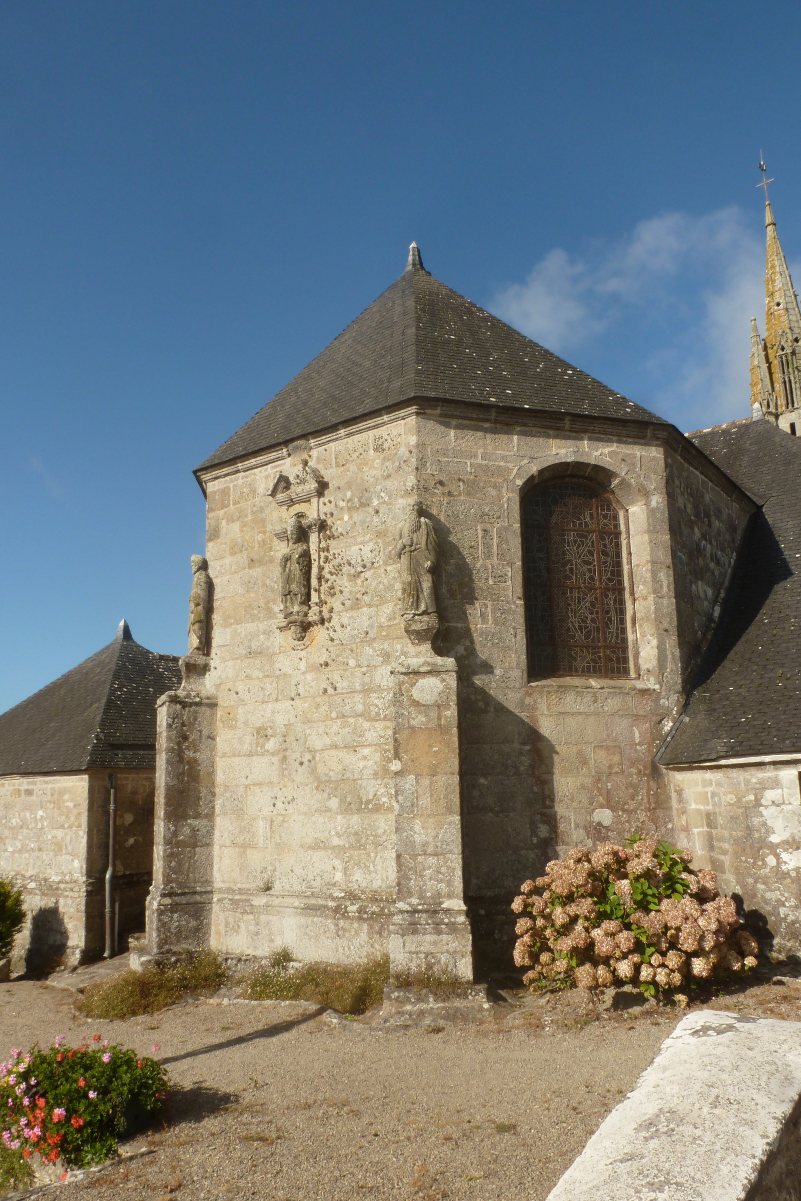 Chevet et statues grandeur nature, vue prise du nord-est. (2019)Immatriculation