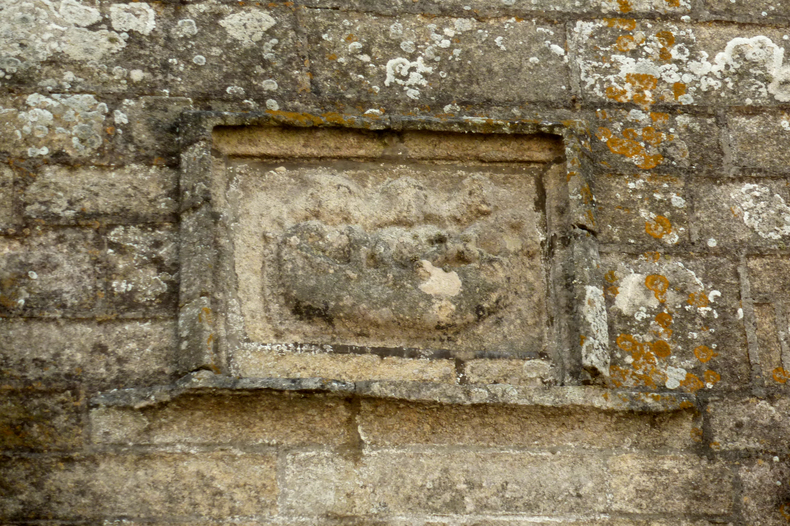 Elévation ouest, détail d'un panneau contenant une barque de pêche sculptée. (2019)Immatriculation