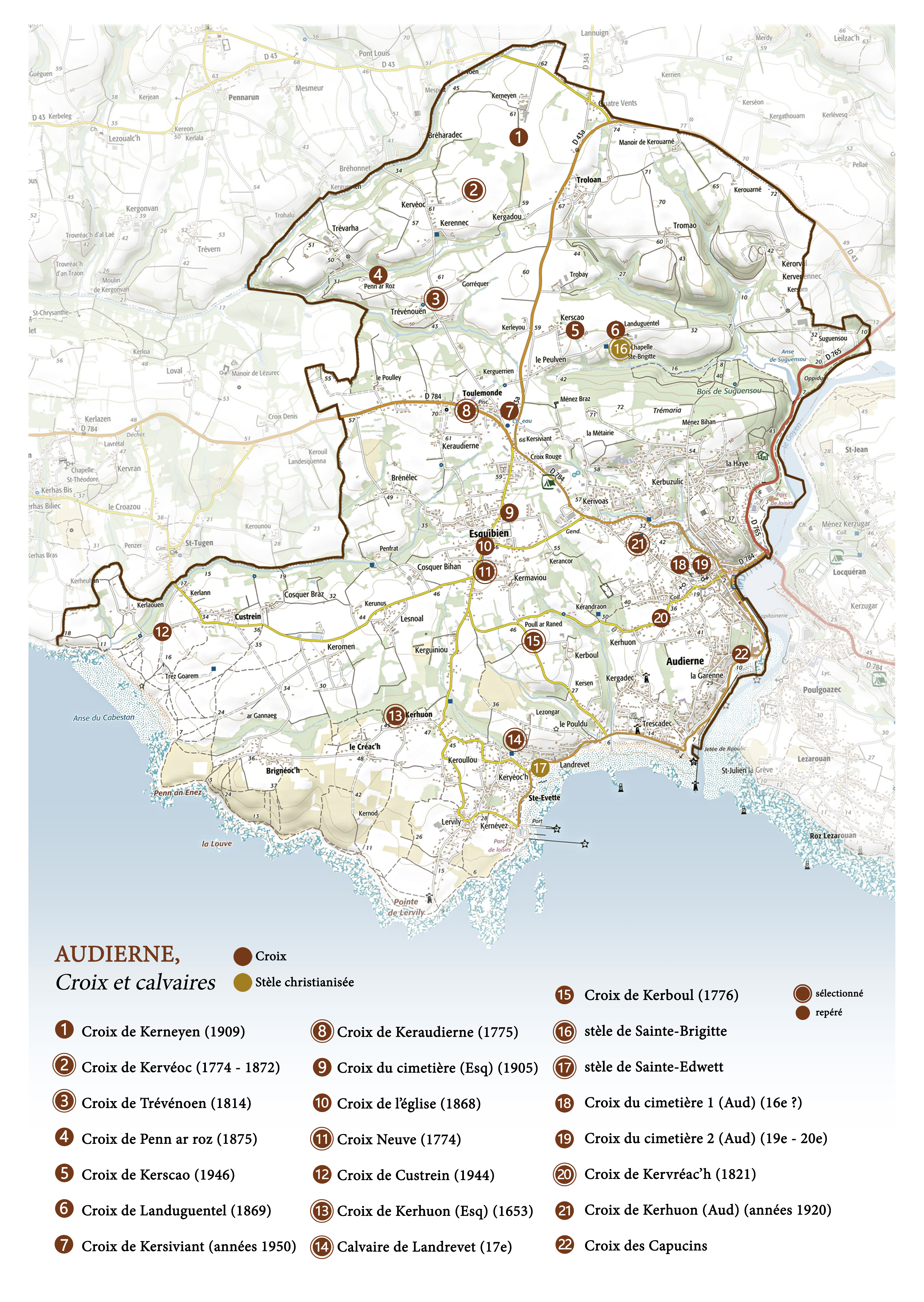 Les croix monumentales d'Audierne, carte de localisation.Immatriculation