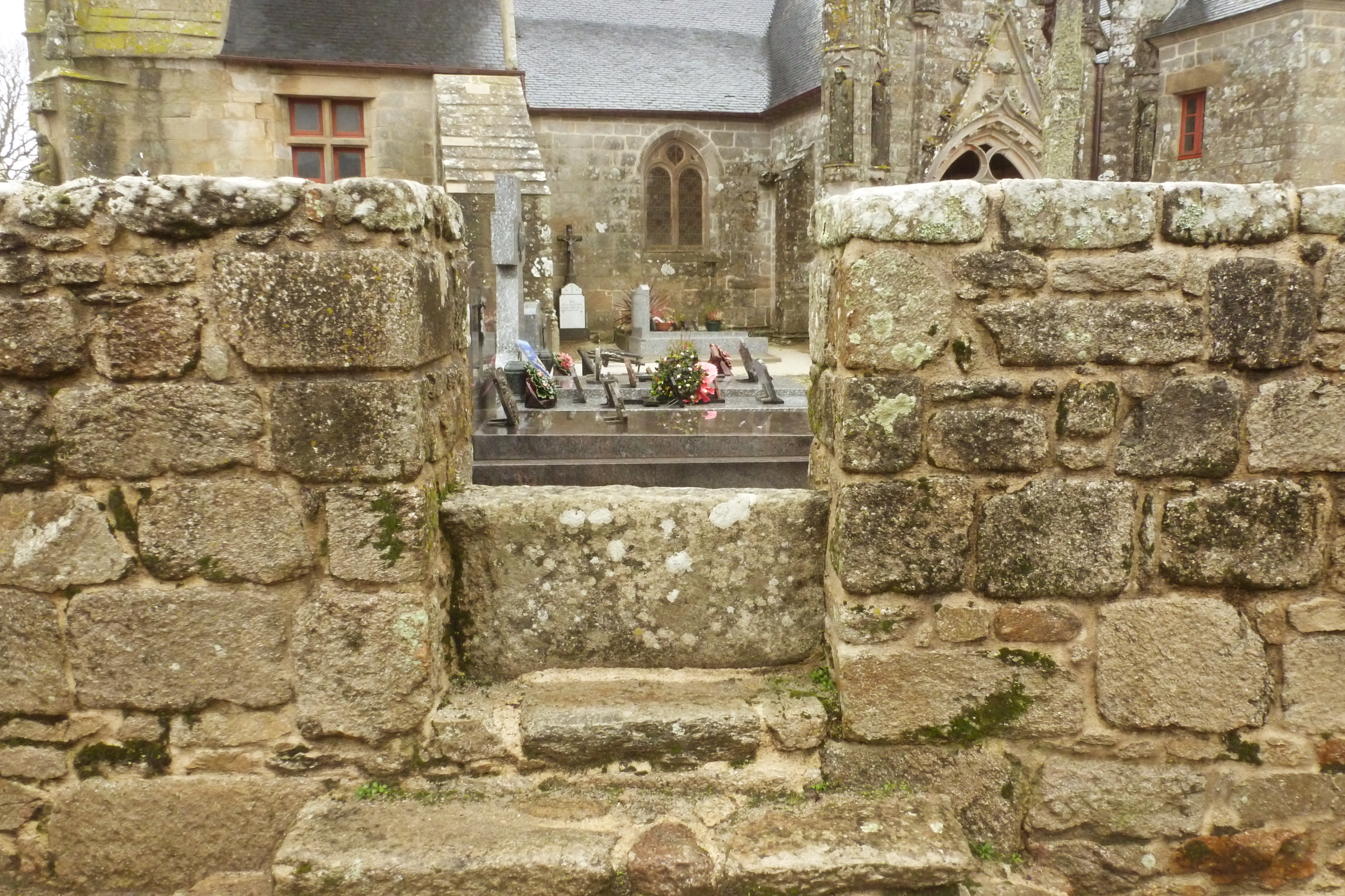 Enclos, côté sud, détail d'un échalier. (2018)Immatriculation