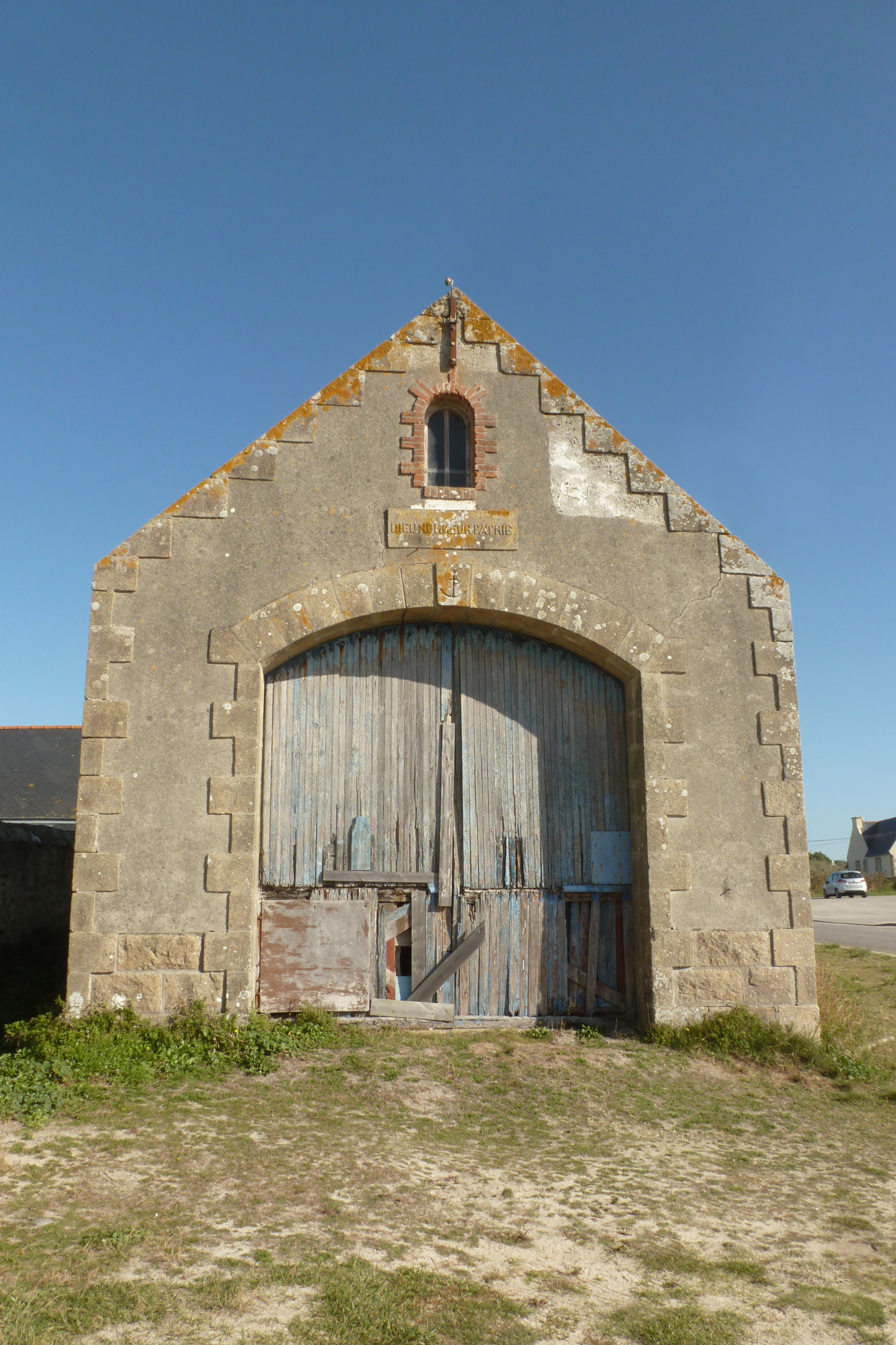 Pignon ouest, porte charretière et inscription DIEU HONNEUR PATRIE.Immatriculation