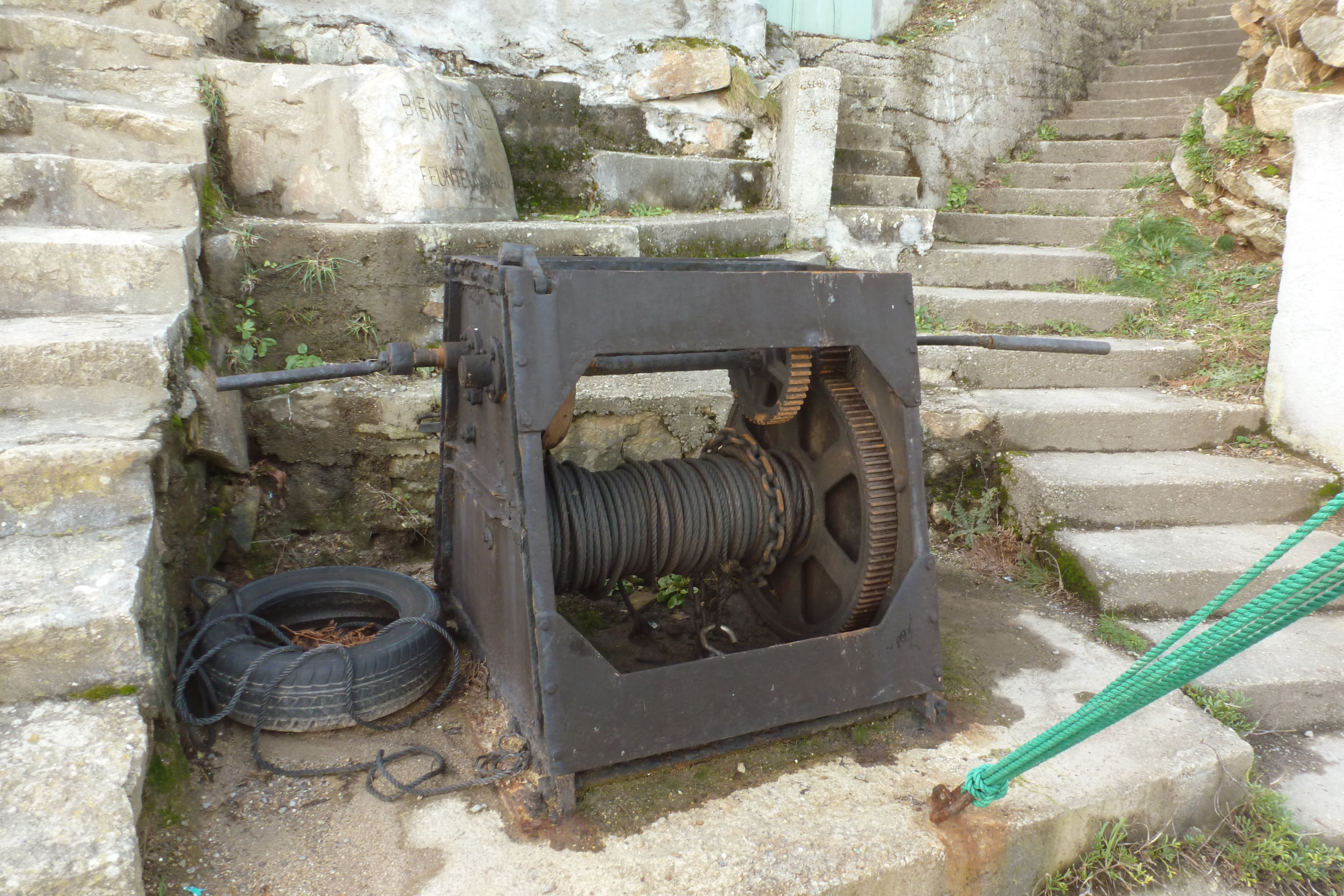 Détail du treuil de hissage.Immatriculation