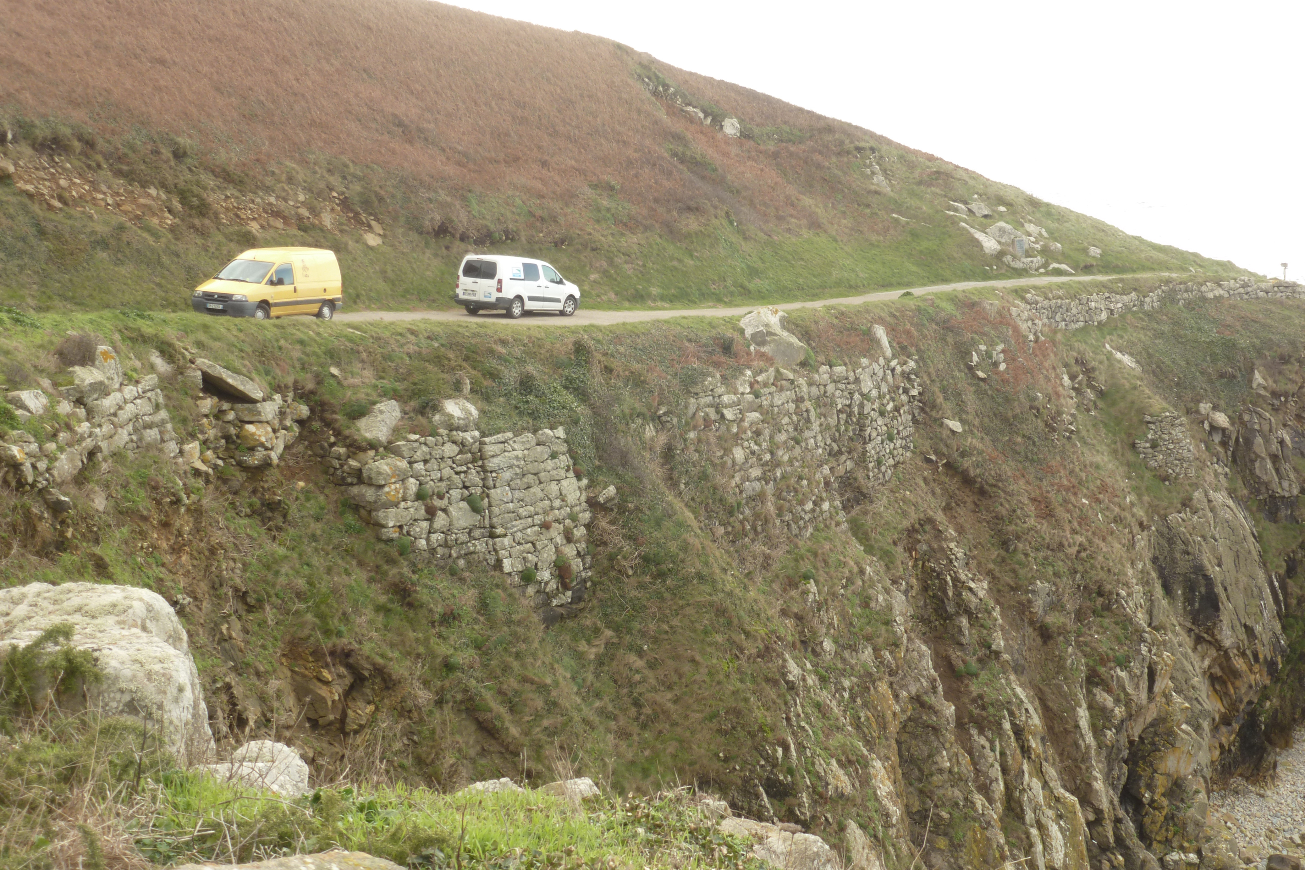 Pors Loubous, murets de soutenement au sud-est de l'anse. Vue générale.Immatriculation
