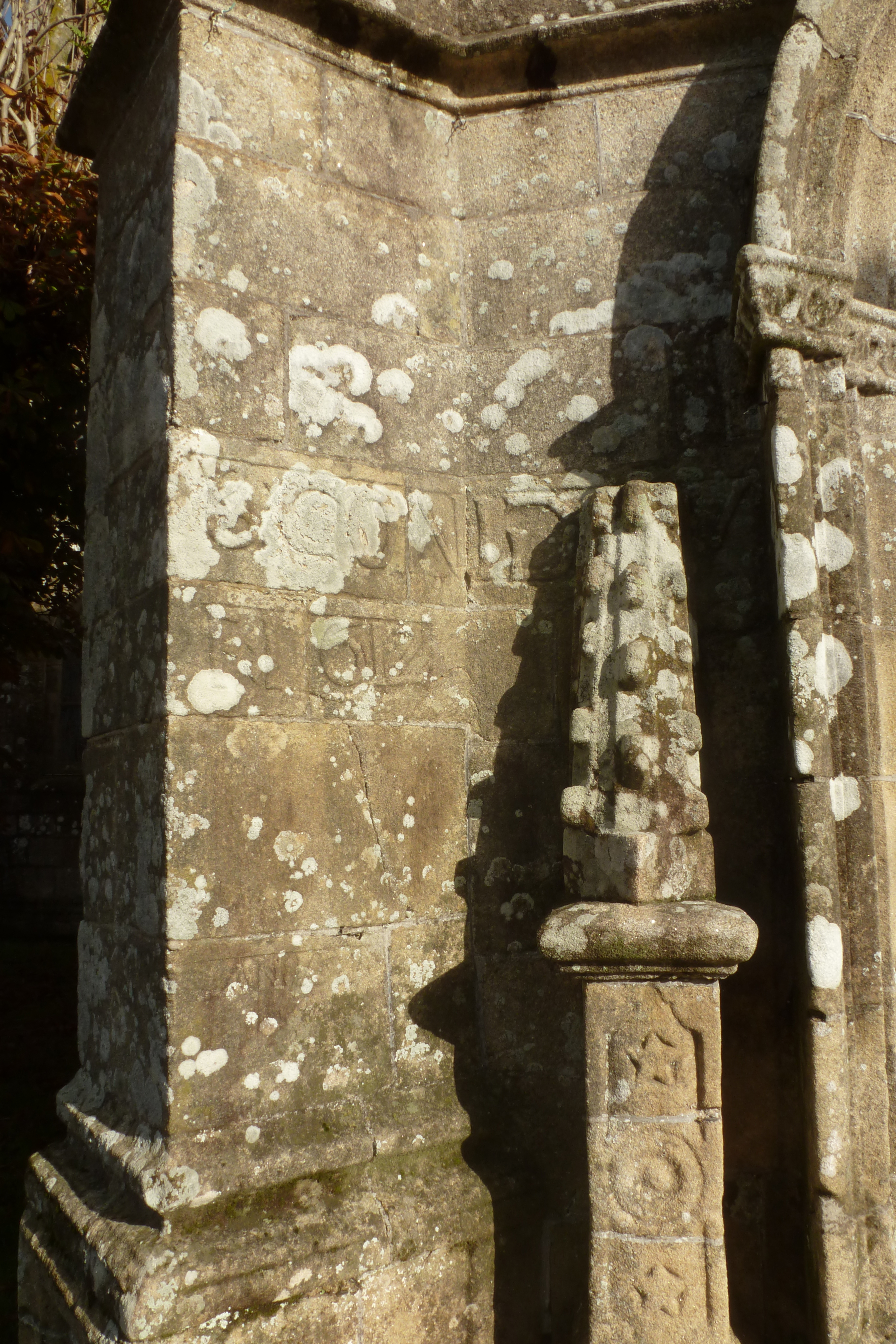 Porche sud, détail du jambage ouest et inscription : Y. GONID(ec) F 1612. (2019)Immatriculation