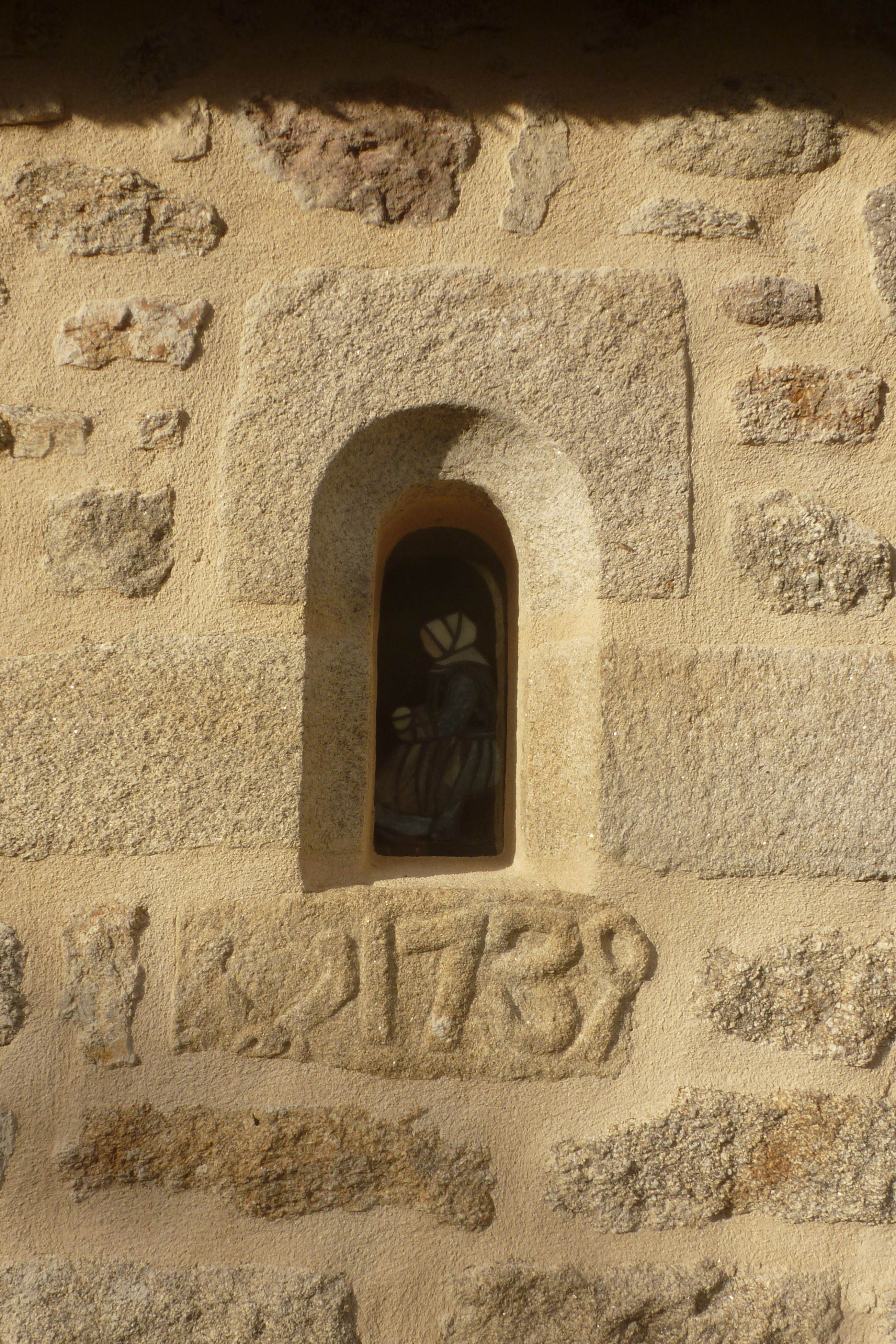 Grange remaniée, élévation antérieure, détail d'une pierre datée en réemploi provenant du bourg d'Esquibien. (2019)Immatriculation