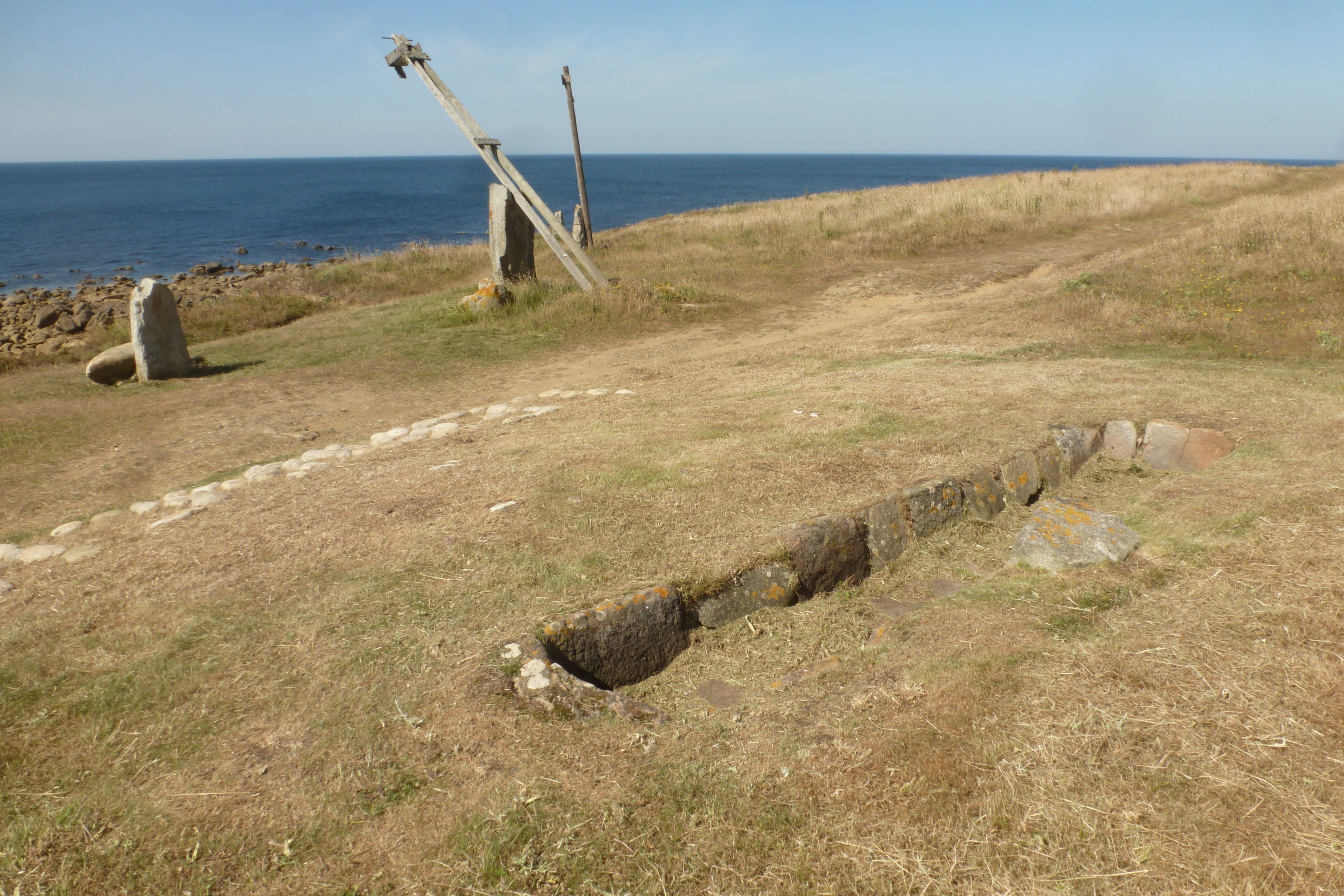 Lennac'h, four pour le brûlage du goémon 2. Présence de mâts de levage en arrière plan.Immatriculation