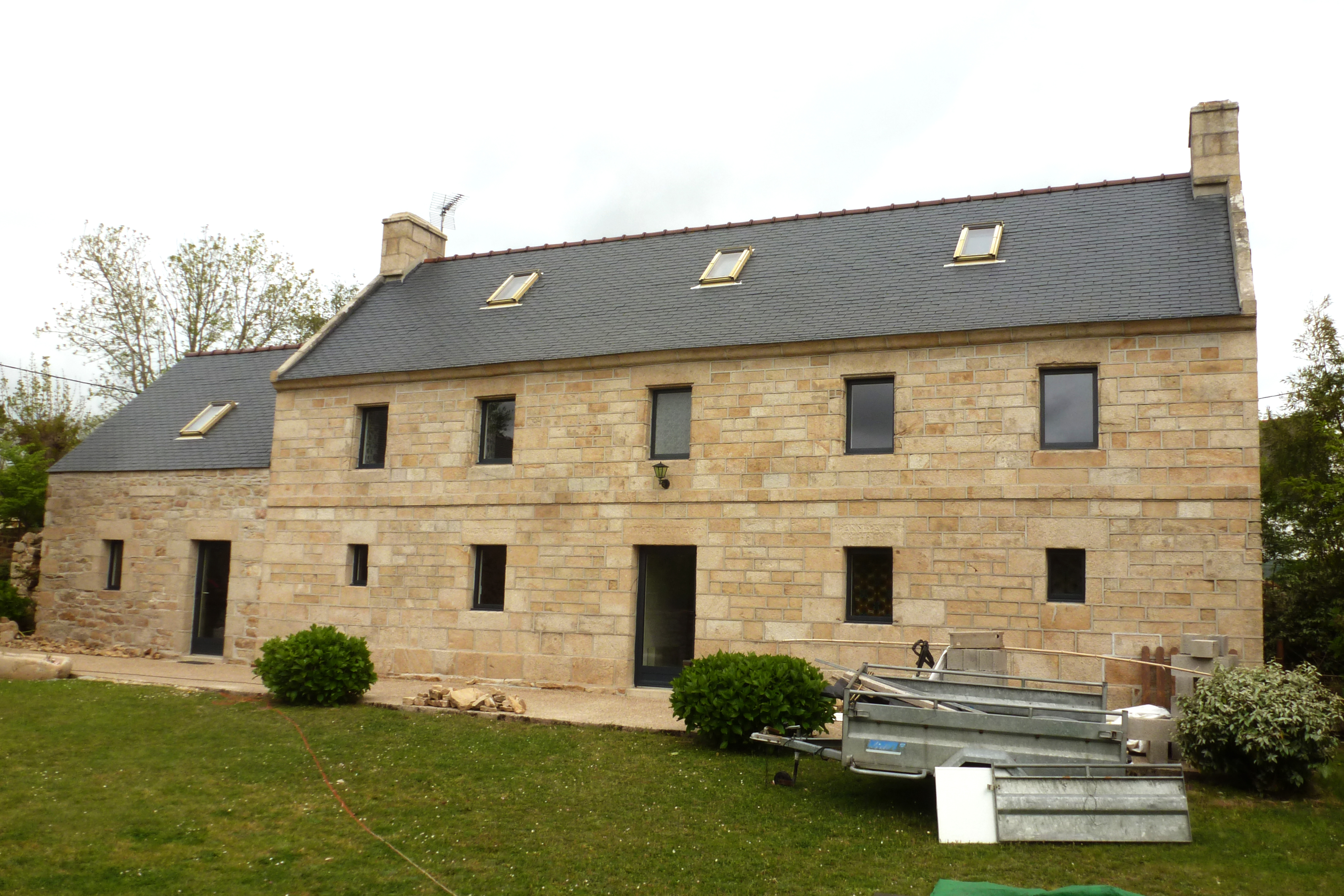 Ferme 3, élévation antérieure de l'alignement principal : logis daté 1838 et écurie datée 1840.Immatriculation