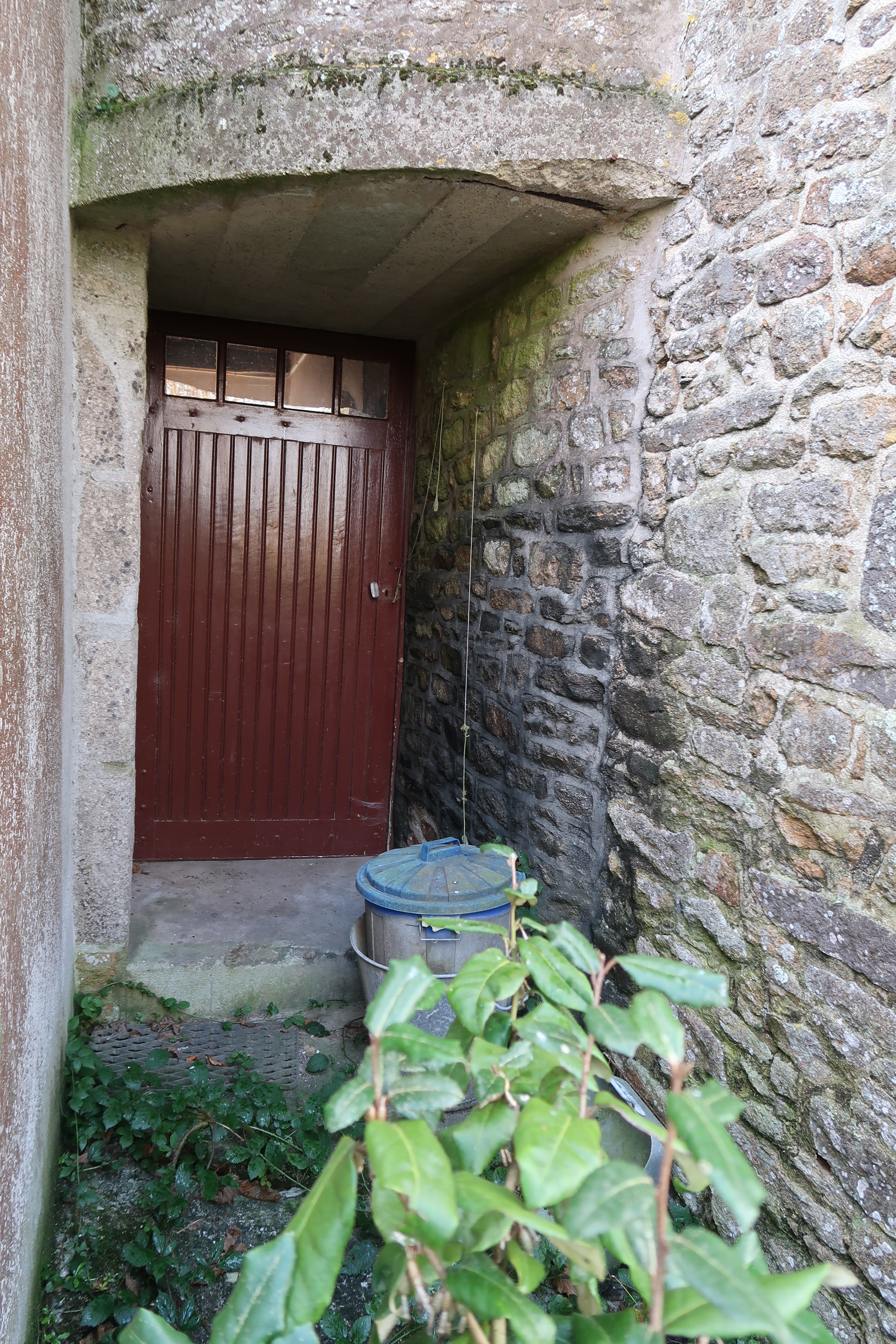 Elévation postérieure orientée vers le nord-nord-est : détail de la porte aménagée sous la tour d'escalier en demi hors œuvreImmatriculation