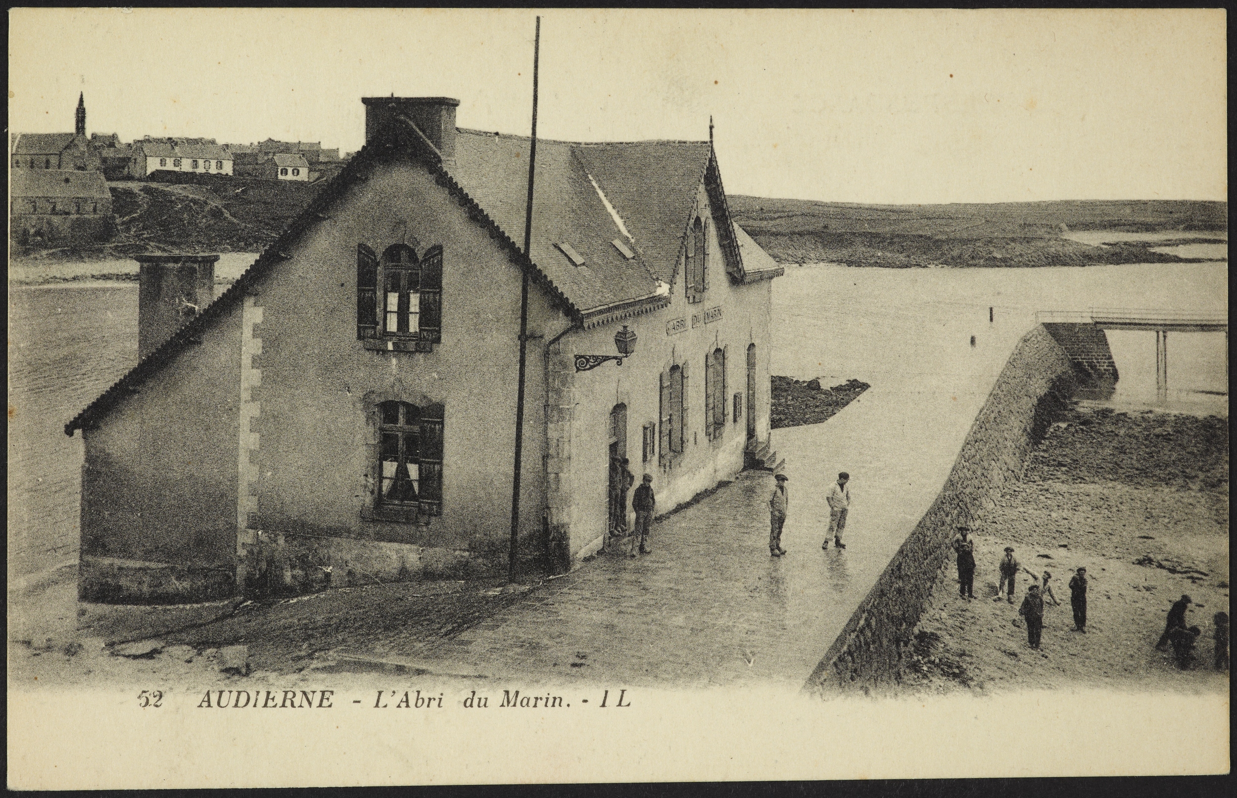Vue générale nord avec la digue dite "du vieux môle". Reproduction carte postale vers 1900. (Coll. LL)Immatriculation