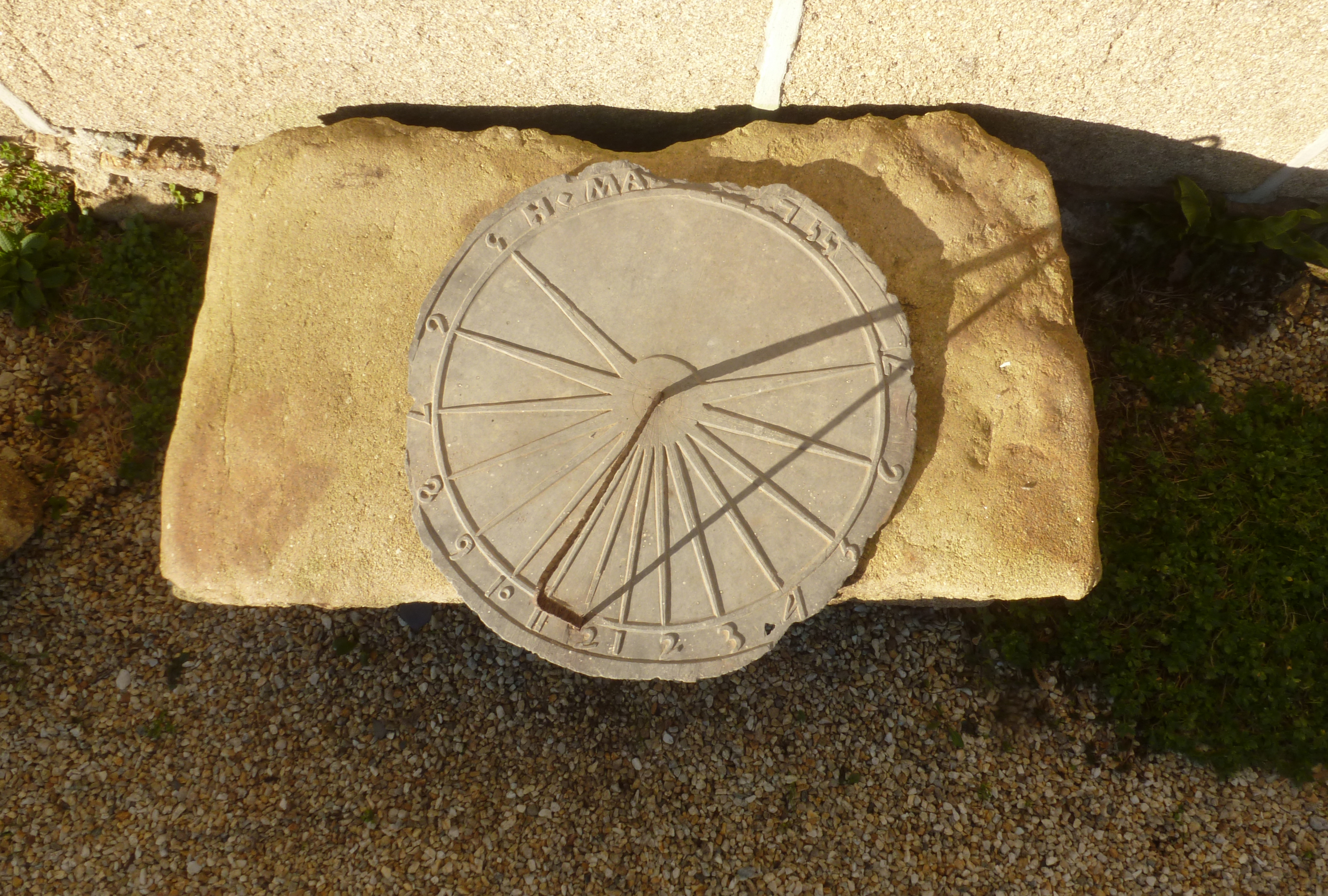 Beuzec-Cap-Sizun, ferme. Cadran solaire daté 1755 originairement placé sur la façade antérieure du logis. Inscription partielle : H. MA. (2020)Immatriculation