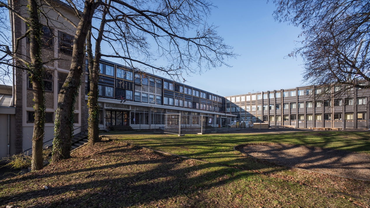 Angle sud est des externat B et C. Travaux de réhabilitation thermique en cours.Immatriculation