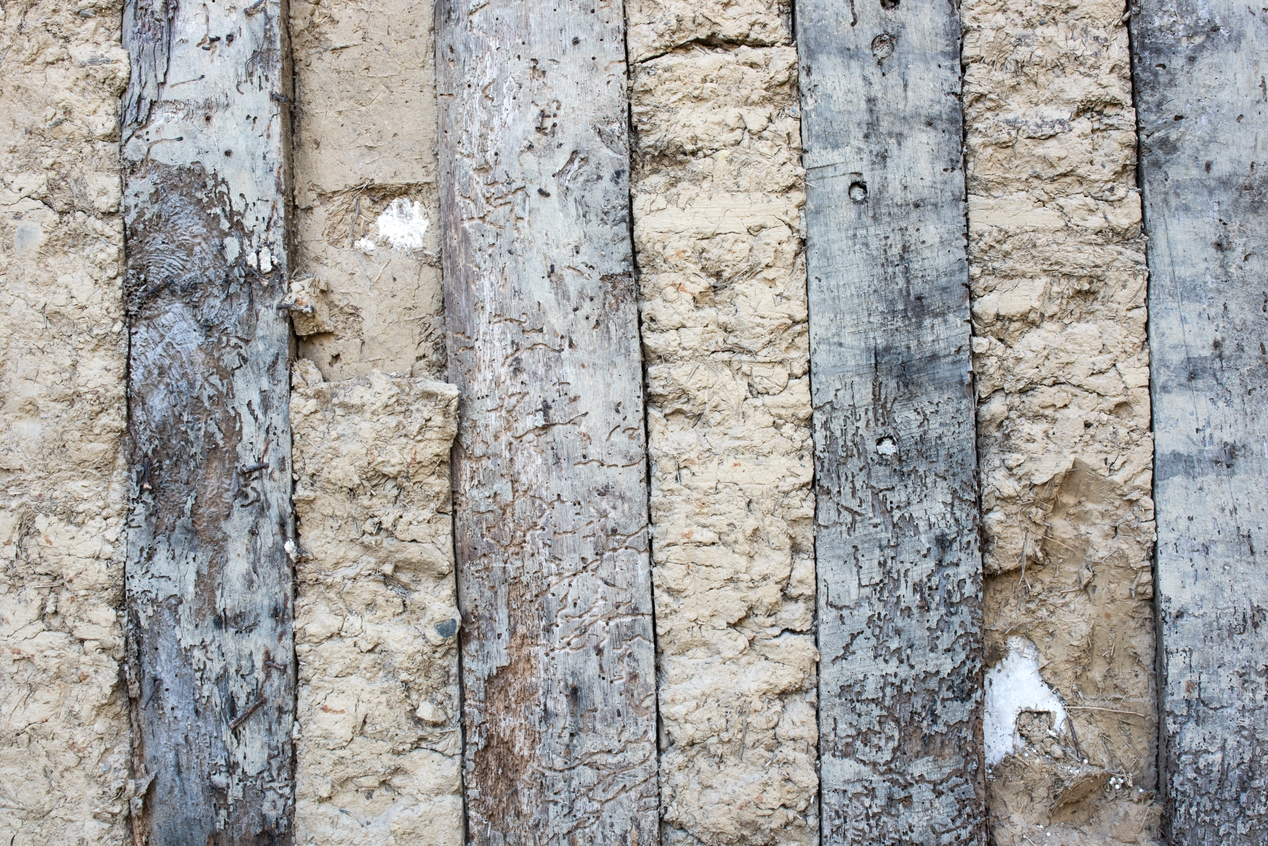 Poteaux de la façade nord avec remplissage en torchisImmatriculation