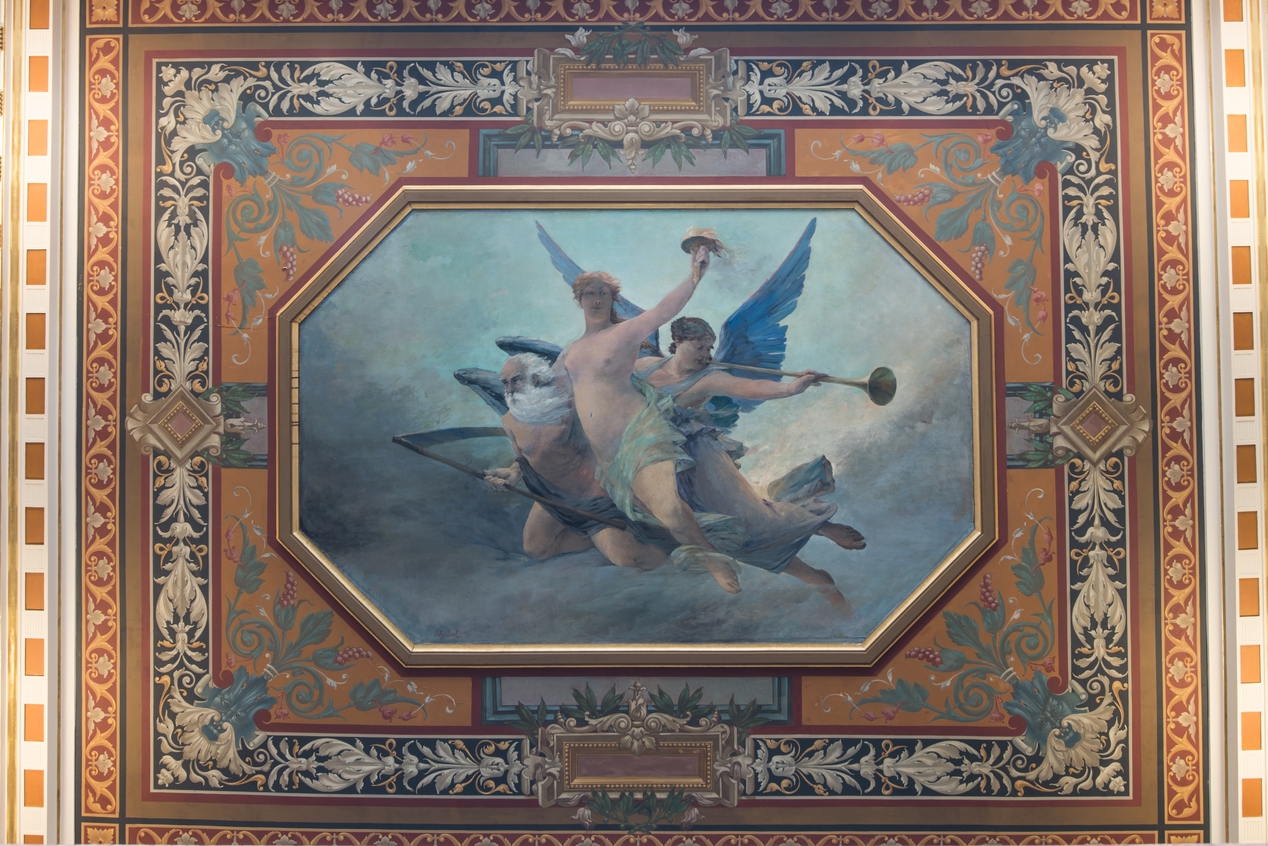 Vestibule haut, peinture allégorique du plafond par Gaston Jobbé-DuvalImmatriculation
