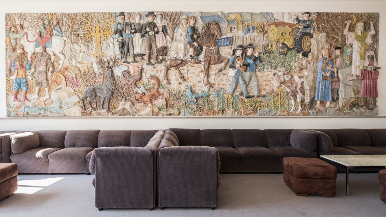 Hall de la salle des assemblées, frise en céramique de Pierre ToulhoatImmatriculation