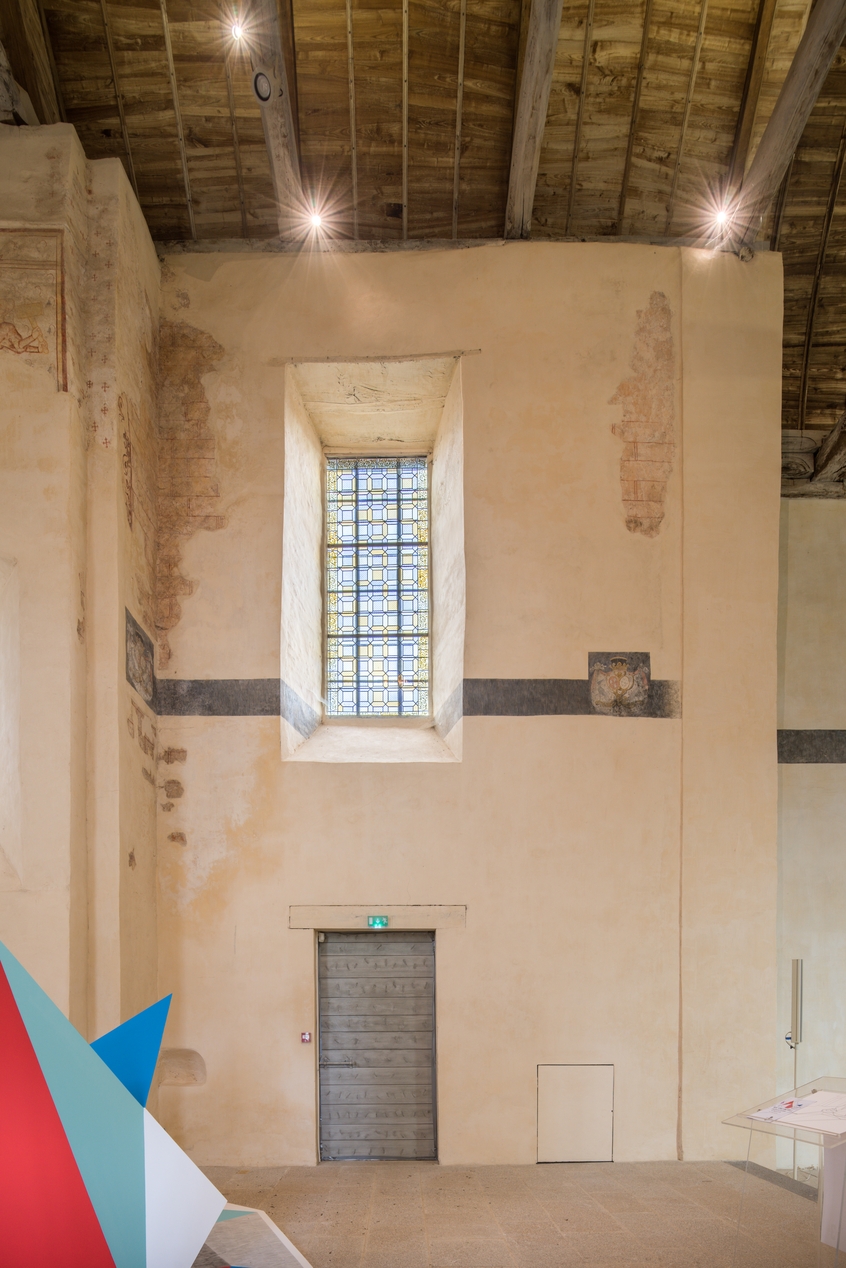 Peintures murales sur le mur sud du choeur. Blason scandant la litre funéraire.Immatriculation