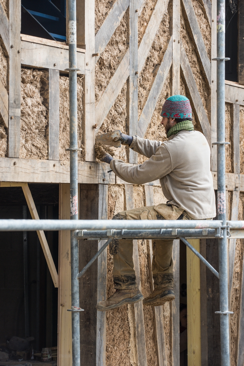 Remplissage en terre-paille sur la façade sudImmatriculation