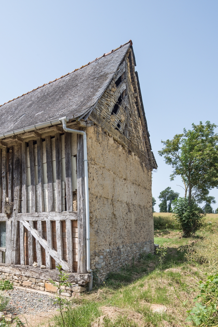 Vue du pignon en bauge et tête de pignon en pan de boisImmatriculation