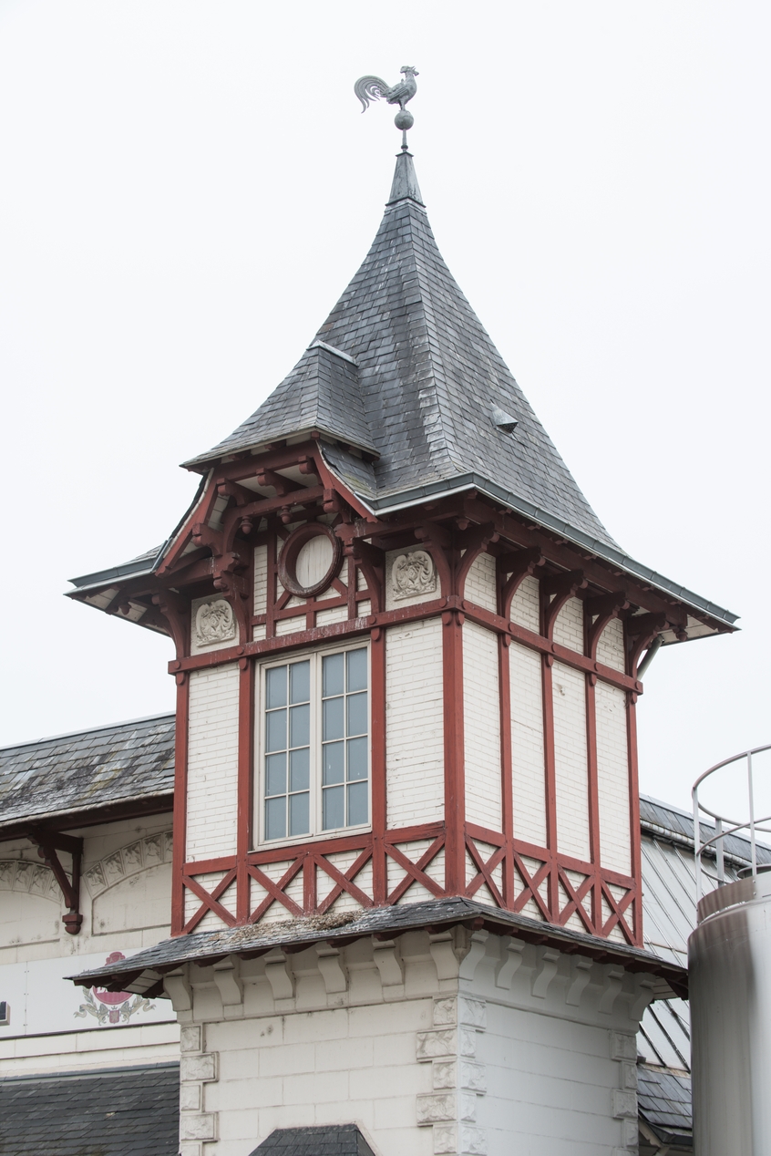 Détail du sommet de la tourelle réalisé en pan de boisImmatriculation