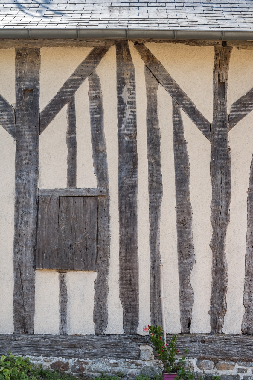 Détail du pan de bois de la dépendanceImmatriculation