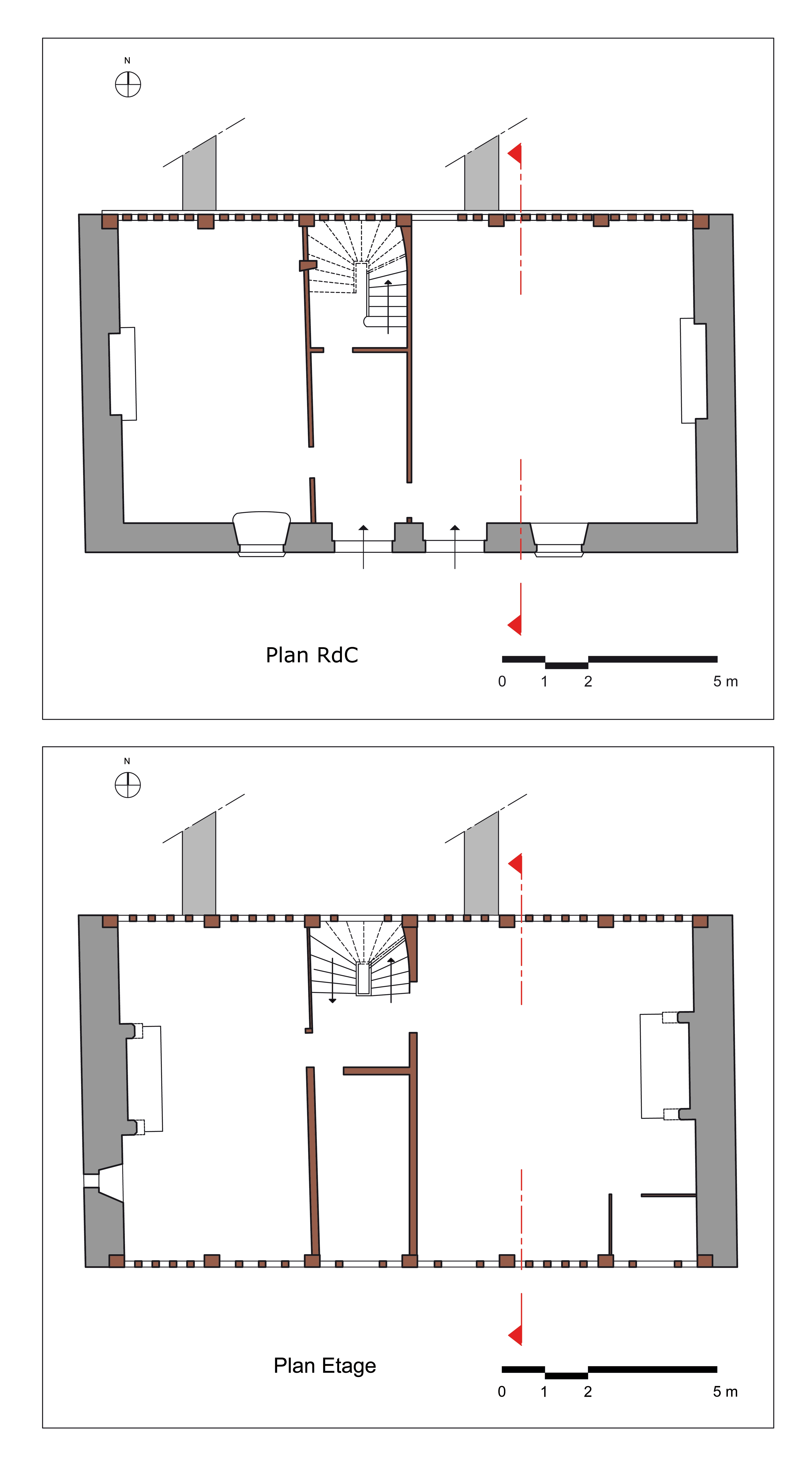 Plan rez-de-chaussée et étage (état supposé d'origine)Immatriculation