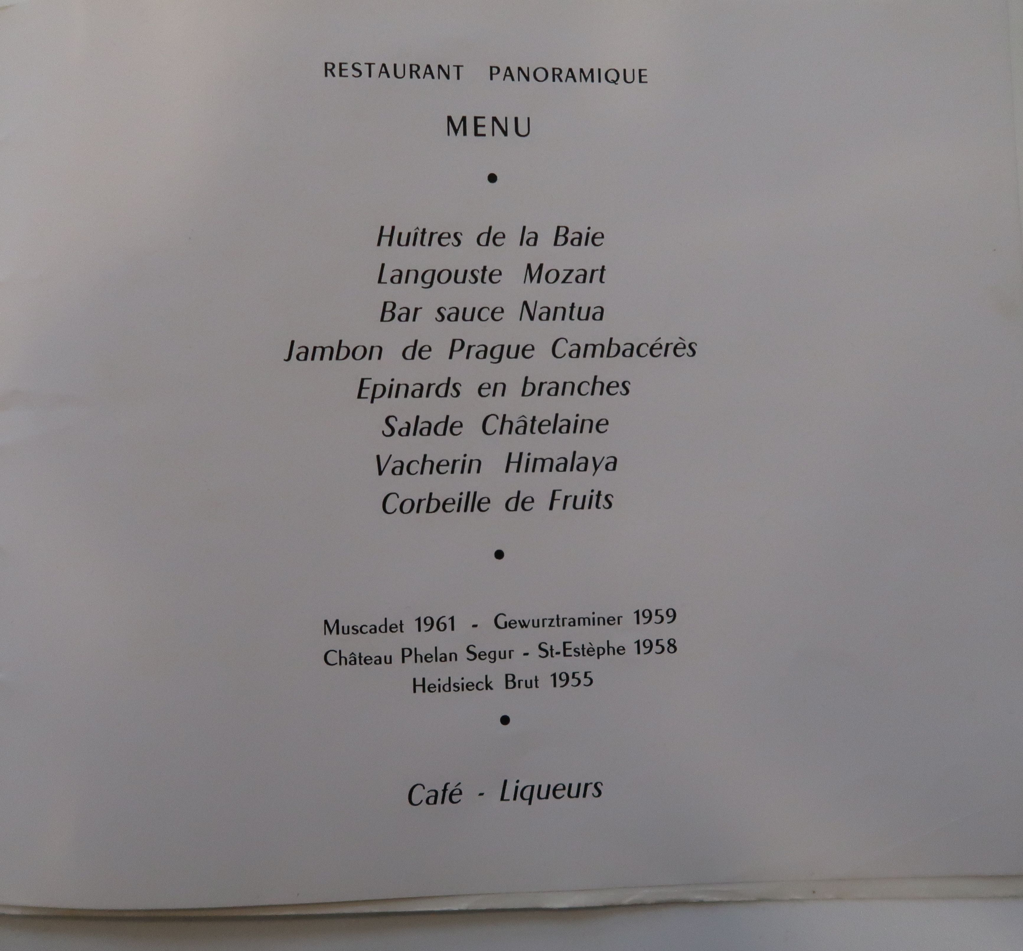 Livret d'inauguration, 26 mai 1963, menuImmatriculation
