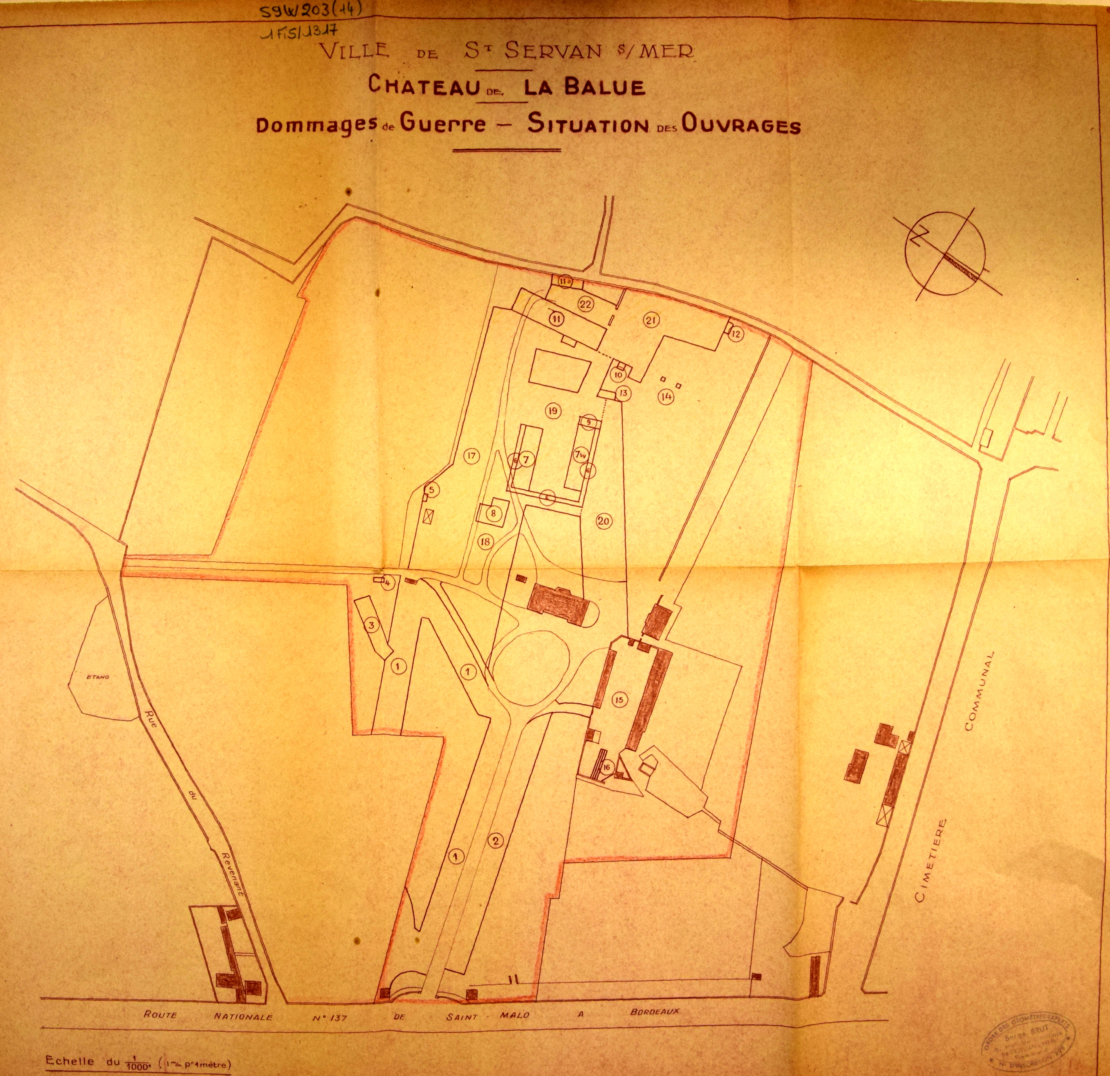 Ville de Saint-Servan-sur-Mer. Chateau de la Balue. Dommages de Guerre - Situation des ouvrages.Immatriculation