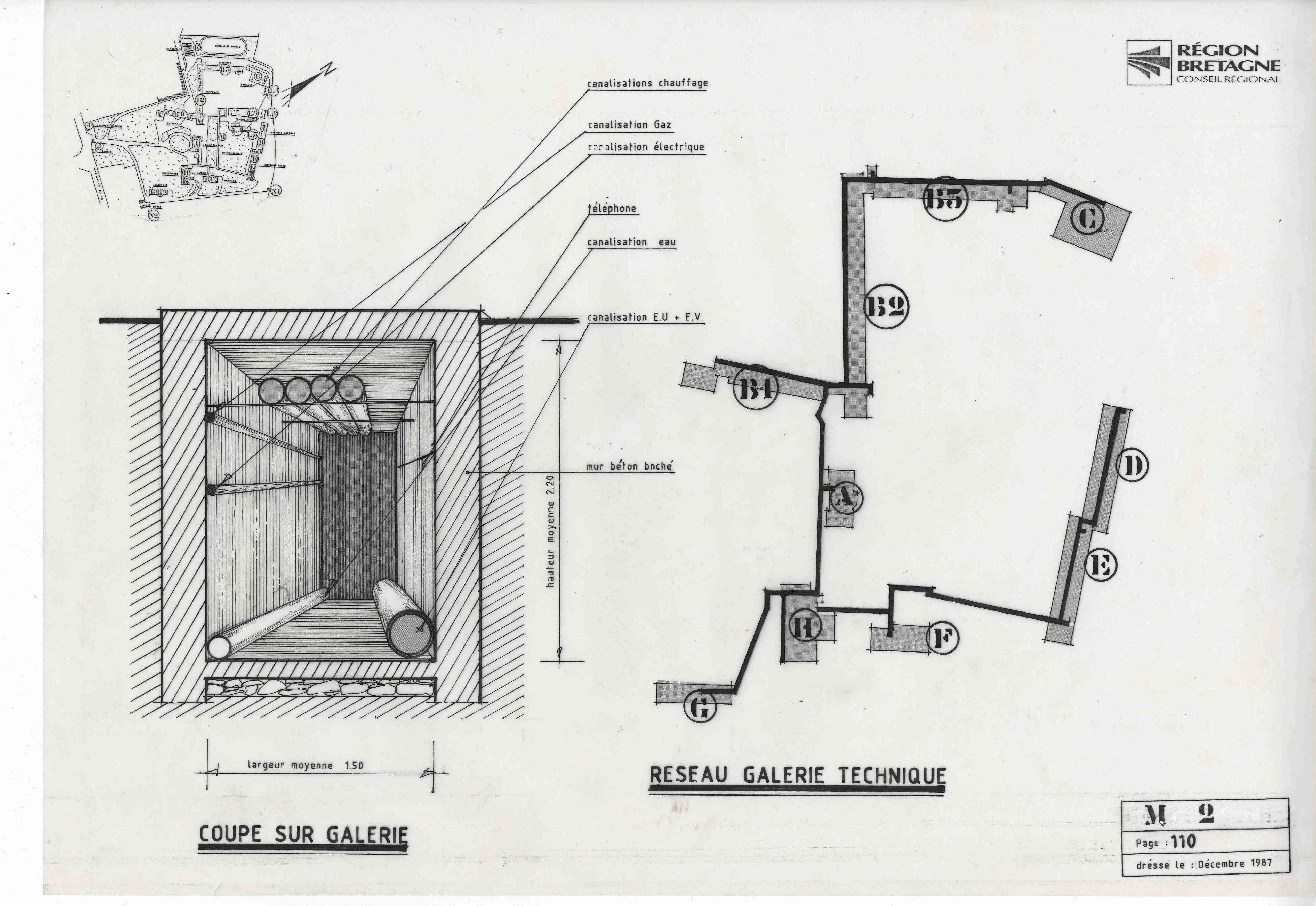 Réseau de galeries techniques et coupe sur galerie.Immatriculation