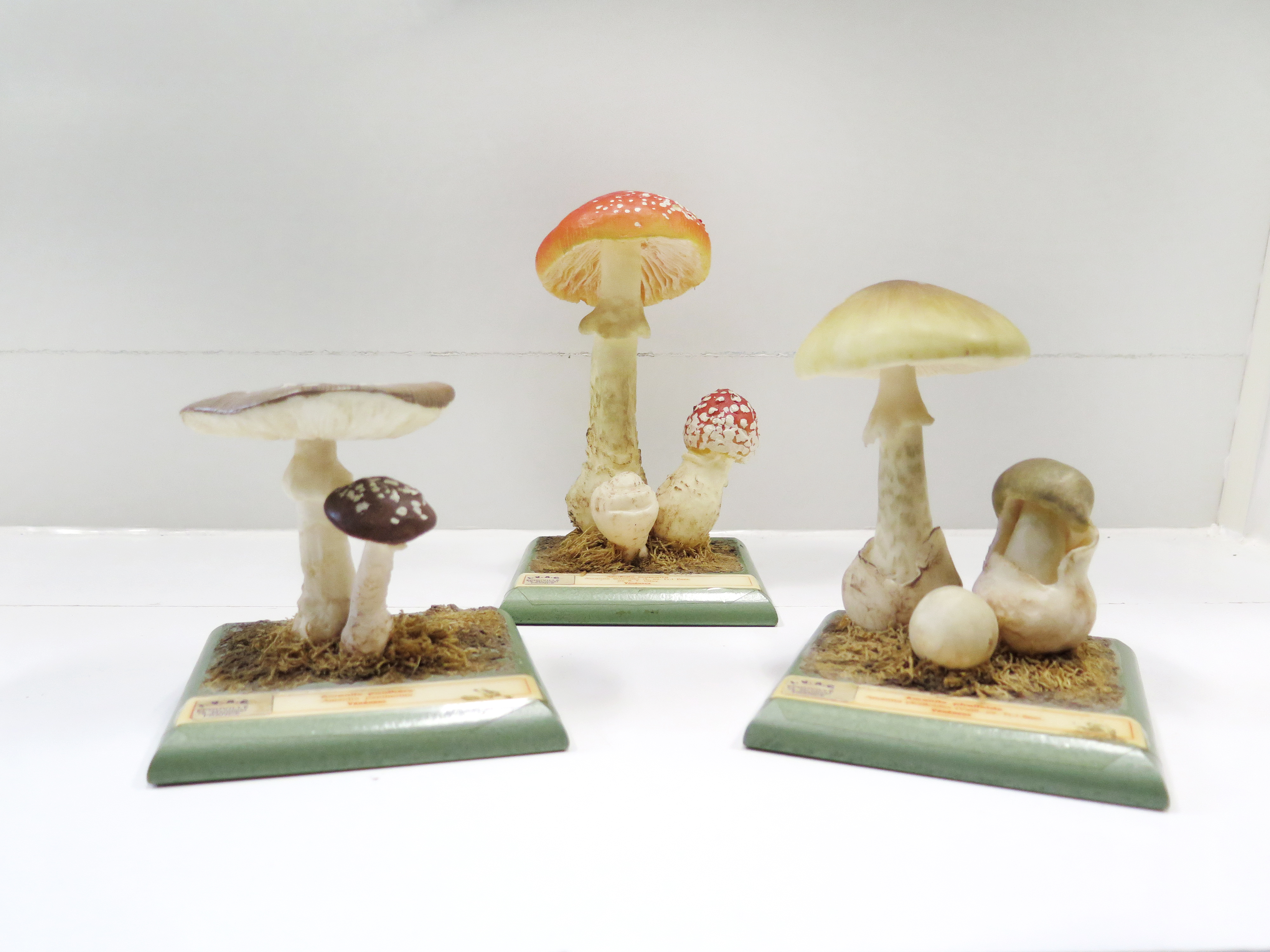 Maquettes de trois champignons : amanite muscaria, amanite panthère, amanite phalloïde - Collection botanique (Etablissements I.V.A.C., première moitié du 20e siècle)Immatriculation