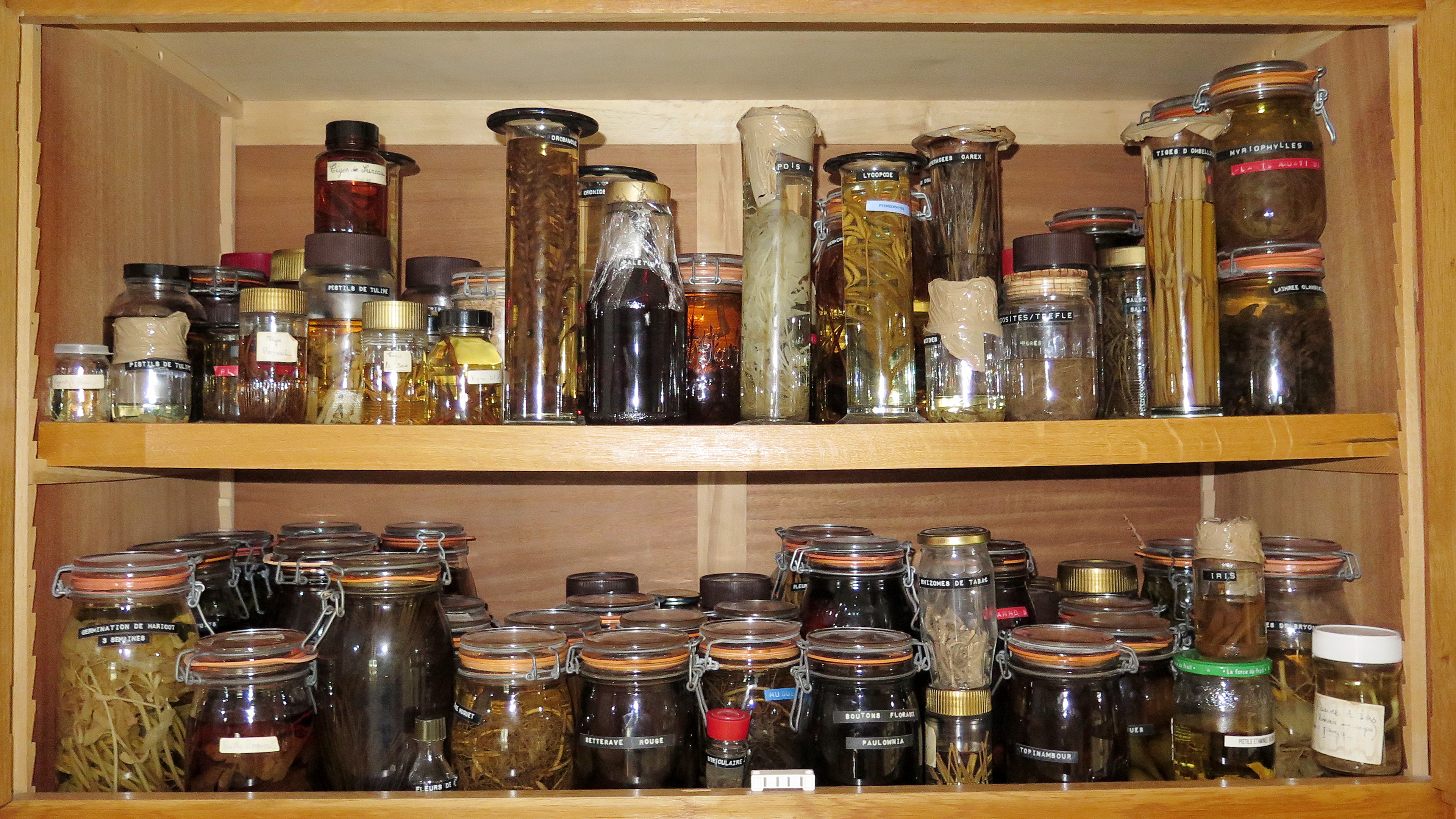 Ensemble de spécimens conservé dans des bocaux en verre - Collection botaniqueImmatriculation
