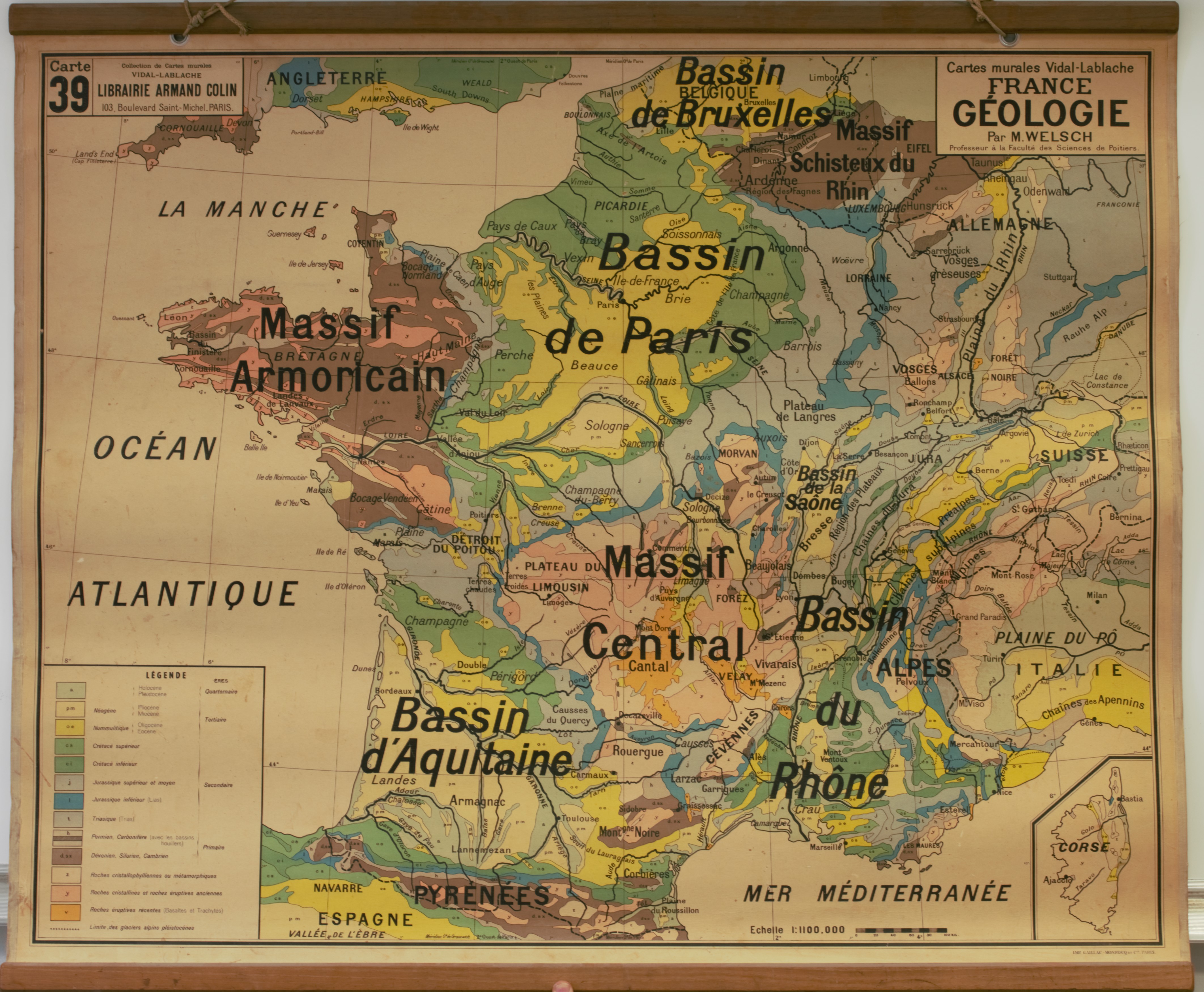 Carte géologique de la France - Collection de cartes murales (Vidal-Lablache)Immatriculation