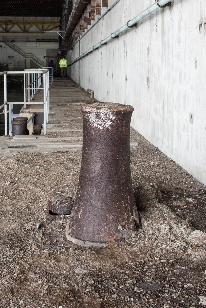 Vue du cabestan électrique à commande à pédale du quai sud de l'alvéole sud (marqués au nom de l’établissement Hillairet Paris Persan) En arrière-plan : platelage en bois du quai sud de l'alvéole sudImmatriculation