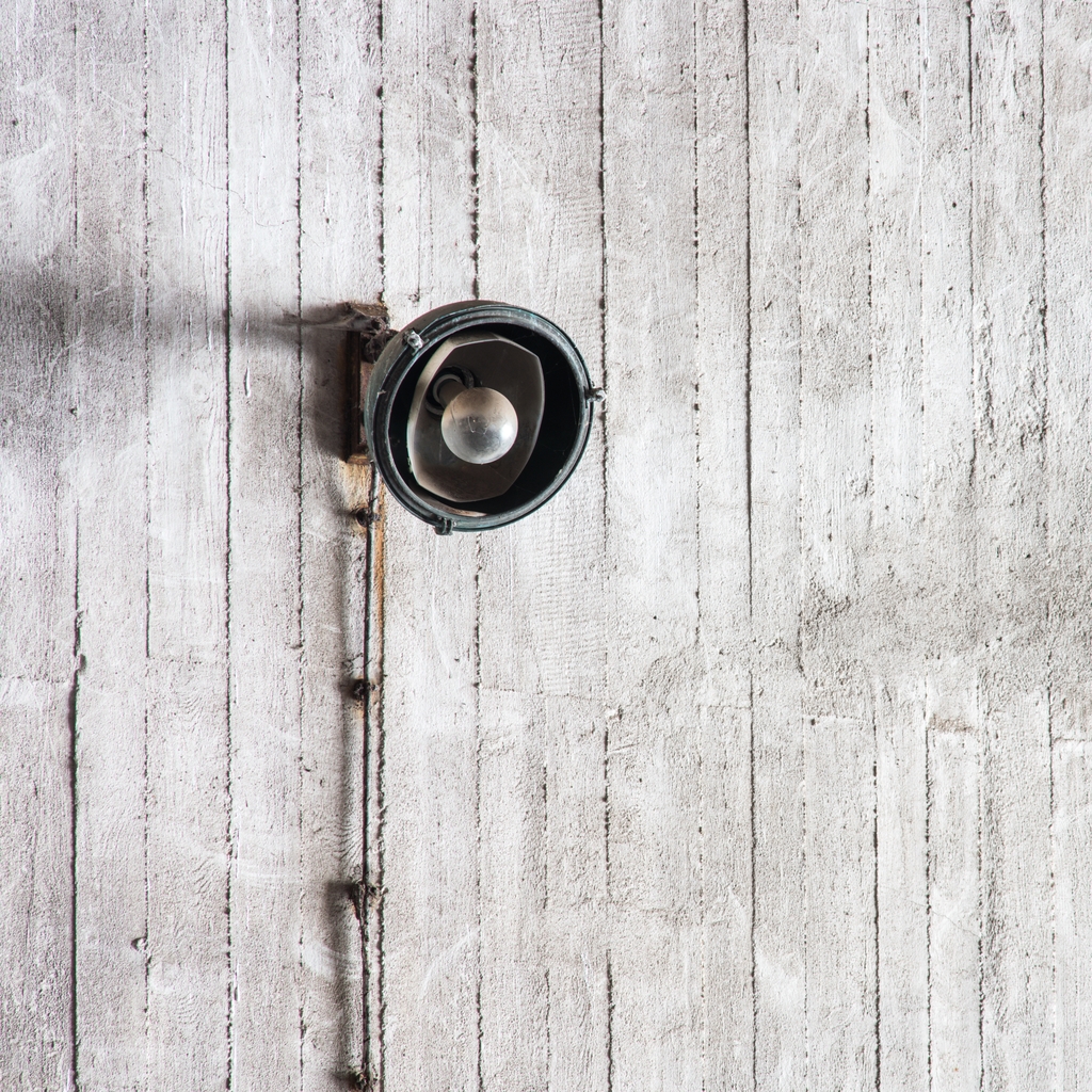 Vue de l'une des lampes murales des alvéoles (elle est dépourvue de son globe)Immatriculation