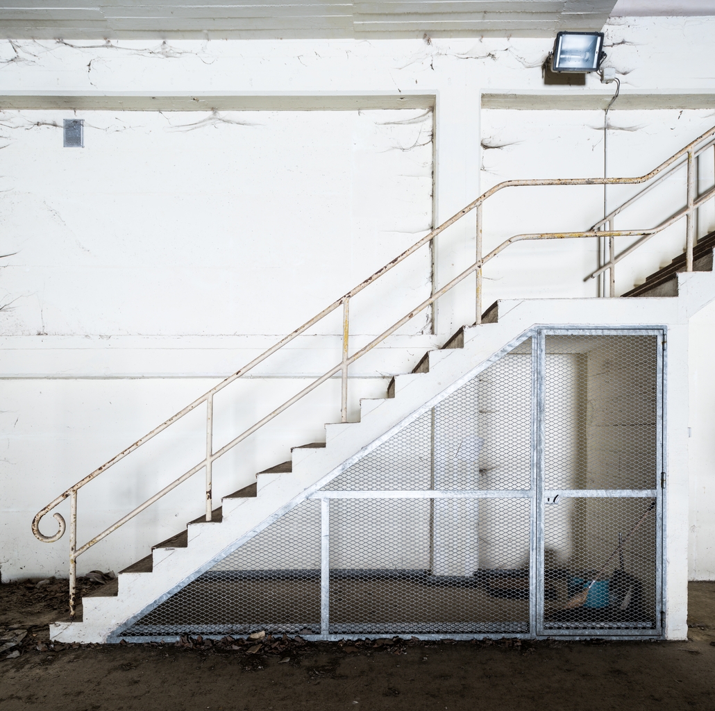 Vue du fond de l'alvéole nord : escalier donnant accès au premier étage avec son garde-corps d'origineImmatriculation