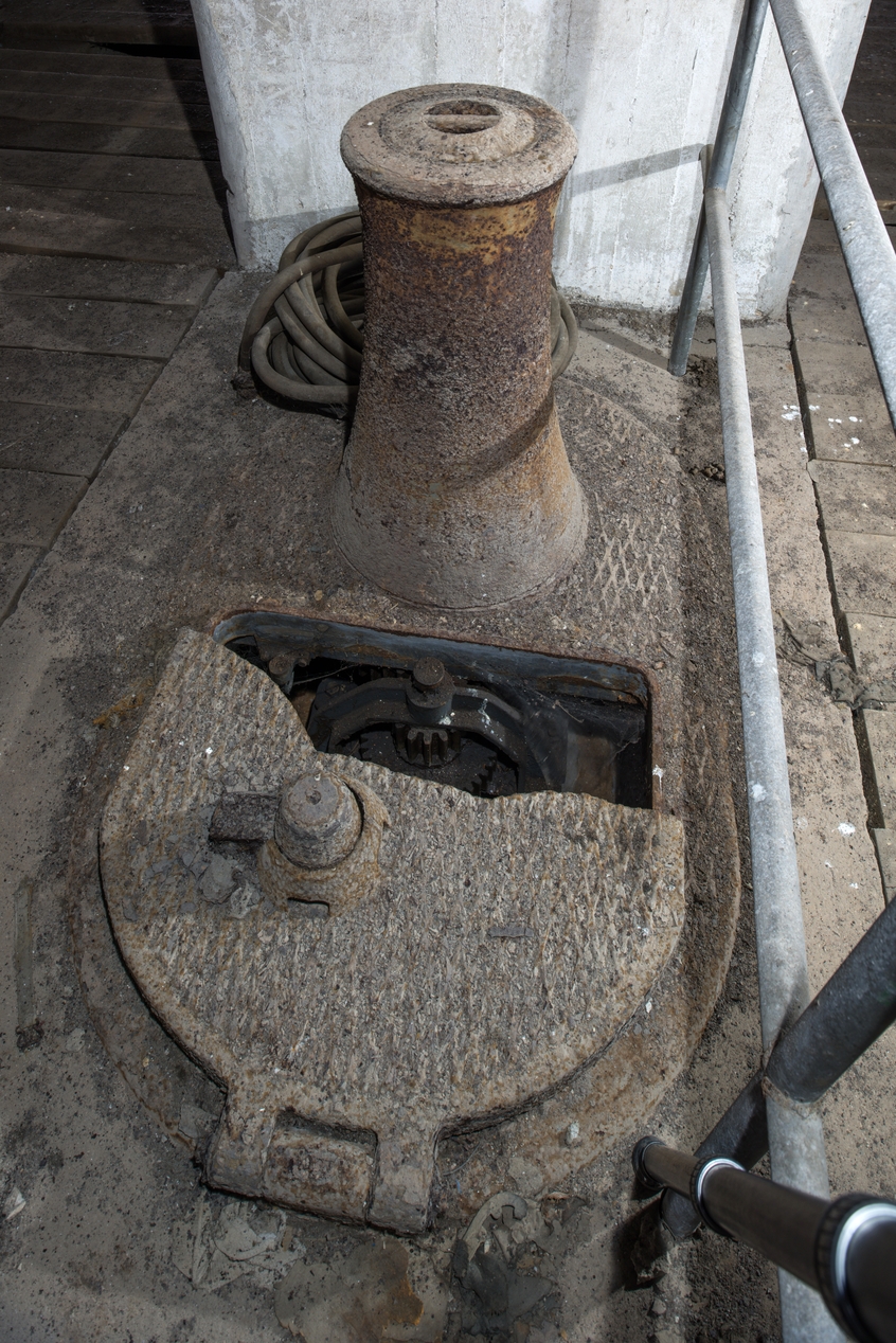 Vue de l'un des cabestans électriques à commande à pédale (marqués au nom de l’établissement Hillairet Paris Persan)Immatriculation